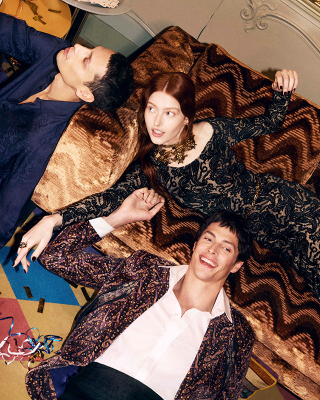 ETRO masterfully captures this magic: The HOLIDAY collection presents looks that are perfect for stylish celebrations. Shimmering velvet and silk fabrics in deep jewel tones, magnificent paisley patterns, and artfully crafted details lend dresses, sets, and suits alike festive sophistication – for both men and women.