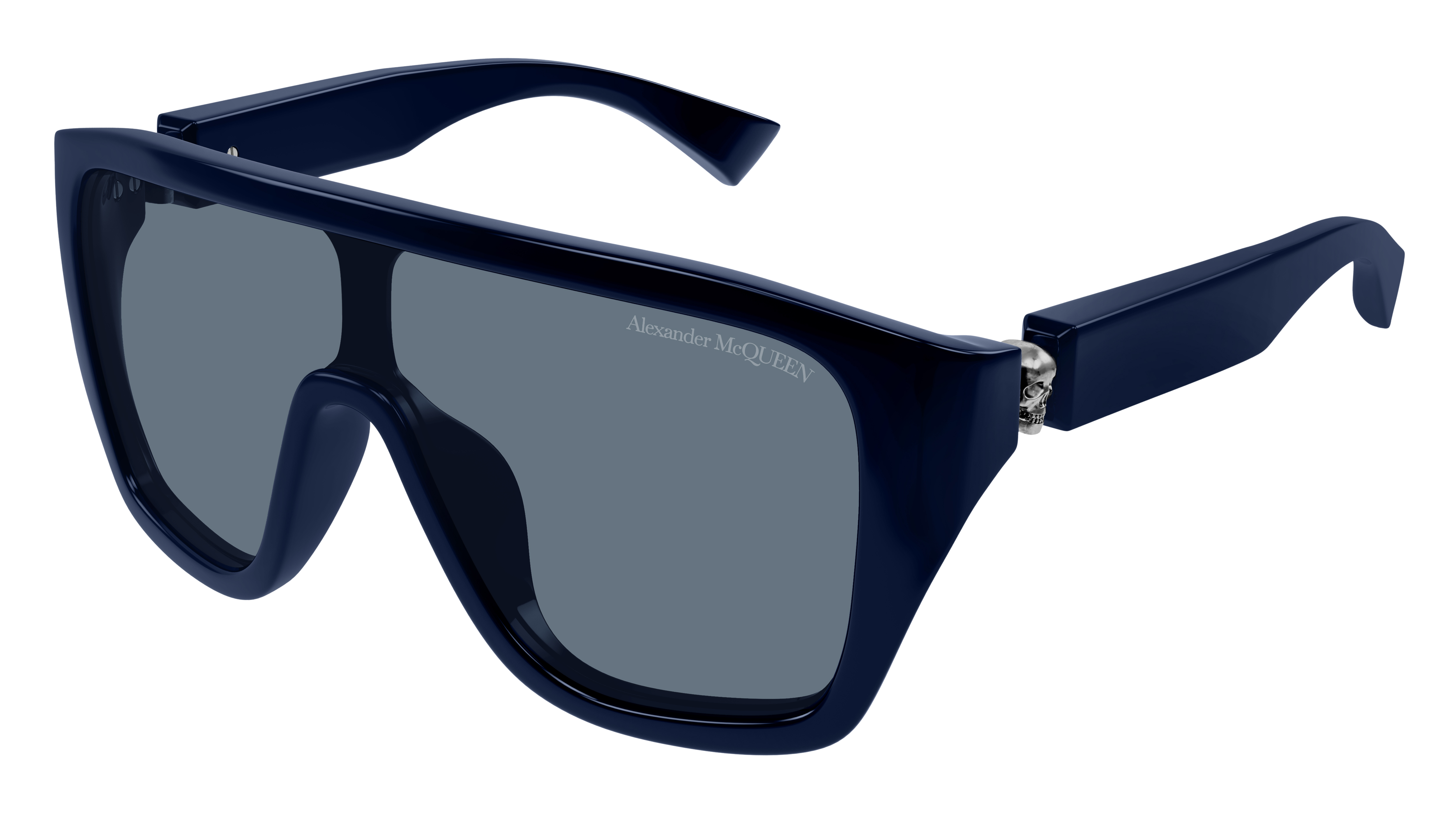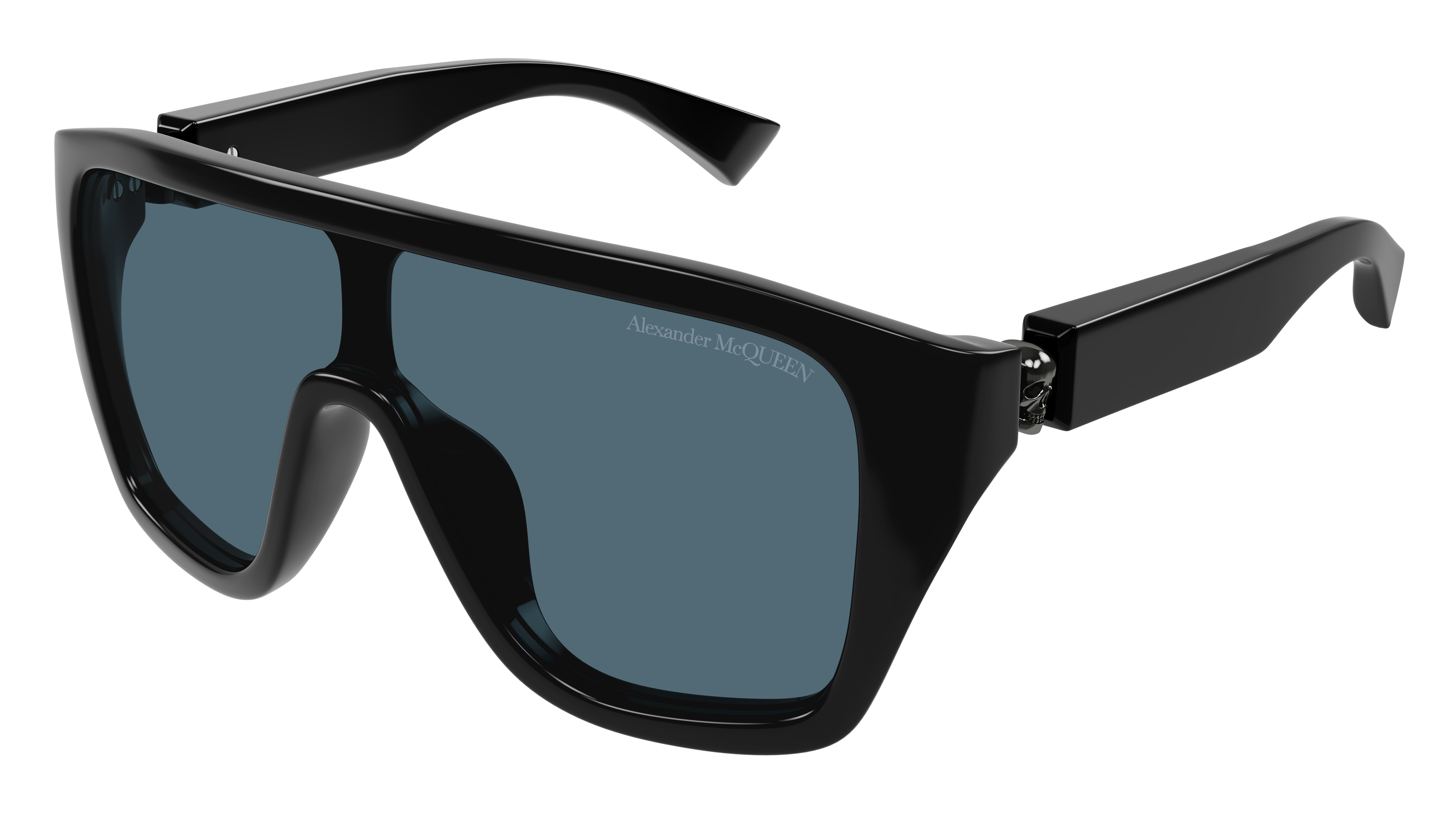 Mit den „Floating Skull“ Sonnenbrillen interpretiert Alexander McQueen Eyewear das ikonische Totenkopf Motiv des Hauses als 3-D-Detail neu.