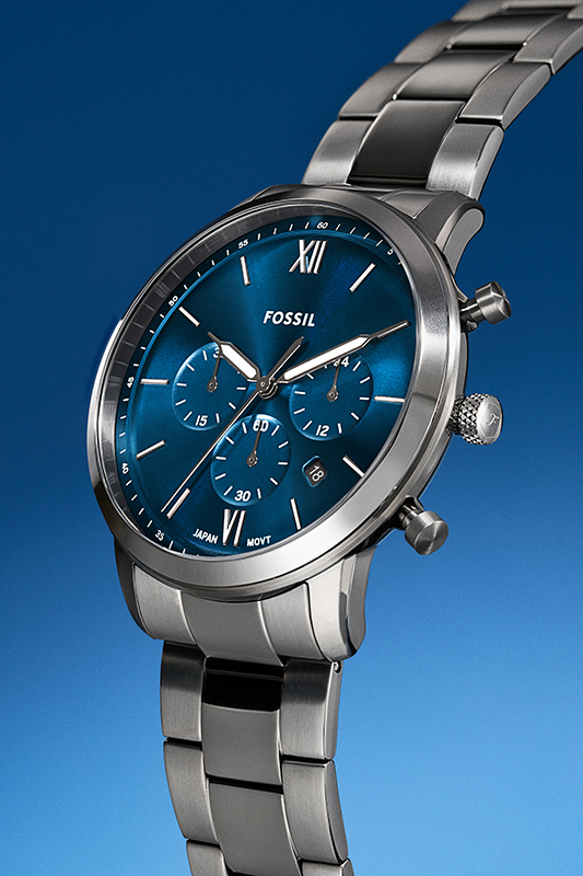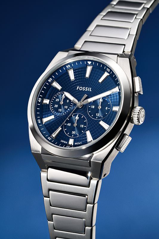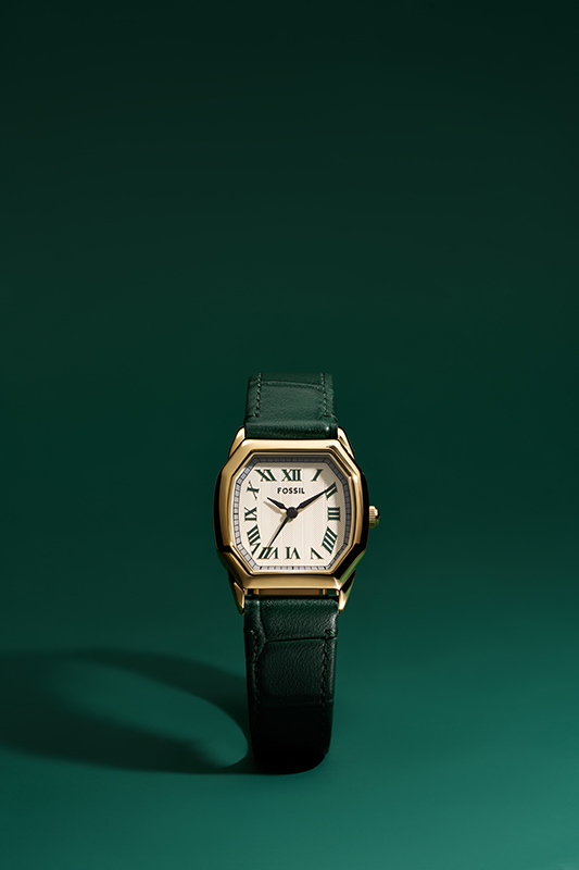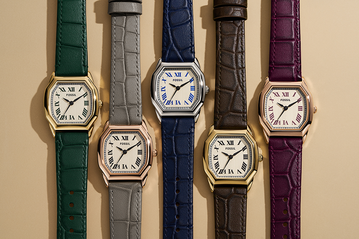 Another highlight of the collection is the reinterpretation of the Harlow – a striking watch with an iconic octagonal case, inspired by a Fossil design classic from the 1990s. This season, it makes a comeback with a subtly patterned dial and croco-embossed leather straps in intense, autumnal hues like rich green, deep purple, or elegant gray.