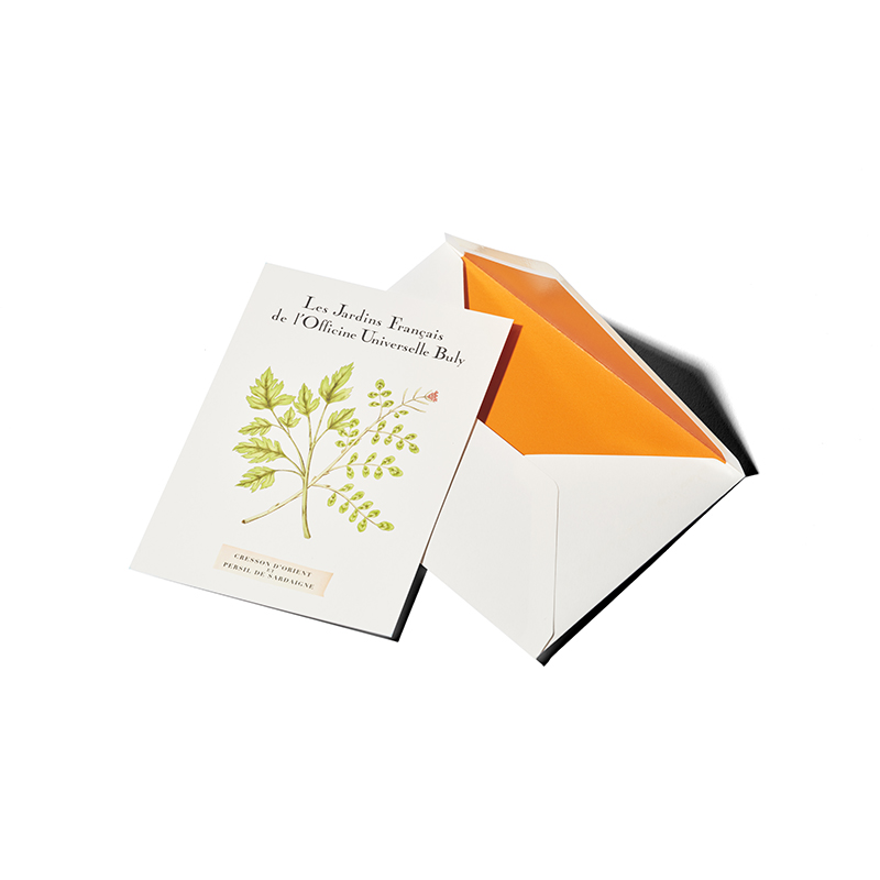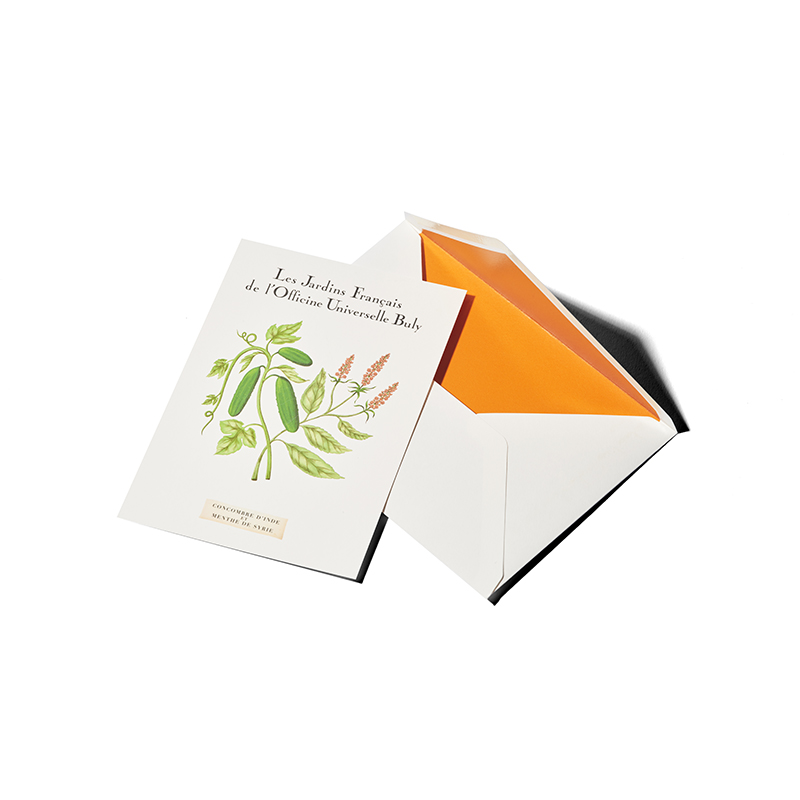 Officine Universelle Buly continues its garden journey, rounding off its collection with six illustrated scented postcards and two new soap oils. As soon as the cards are removed from their envelopes, they exude the wonderful scents of the plants depicted in the delicate illustrations. The new shower oils cleanse and care for the skin, enveloping it in enchanting fragrances.