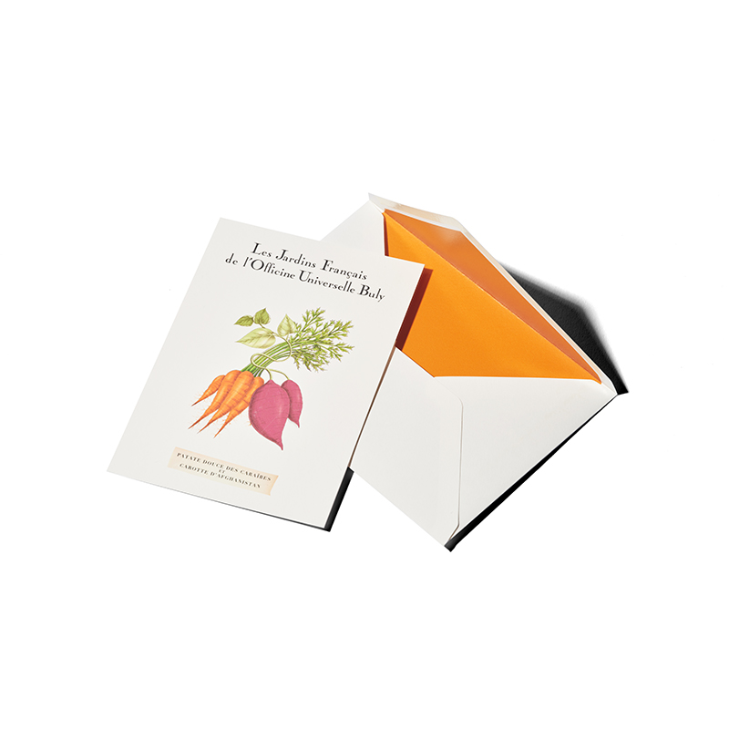 Is there anything more beautiful than receiving a carefully handwritten postcard, on which thoughts, greetings, or declarations of love are immortalized and celebrated by a dancing quill pen? Tomato, currant, rhubarb, beetroot, watercress, parsley, cucumber, mint, lemon verbena, basil, carrot, and sweet potato – they all lend the paper their sweet, fresh, or spicy scents. Officine transforms itself into a perfume messenger of modern times: on its postcards, loving words and wonderful fragrances merge in the service of a somewhat forgotten art that deserves to be revived: handwritten correspondence.