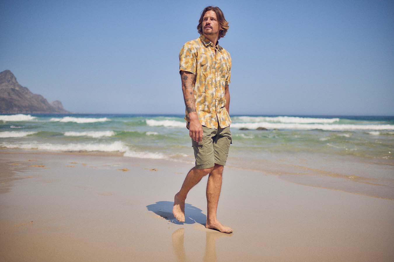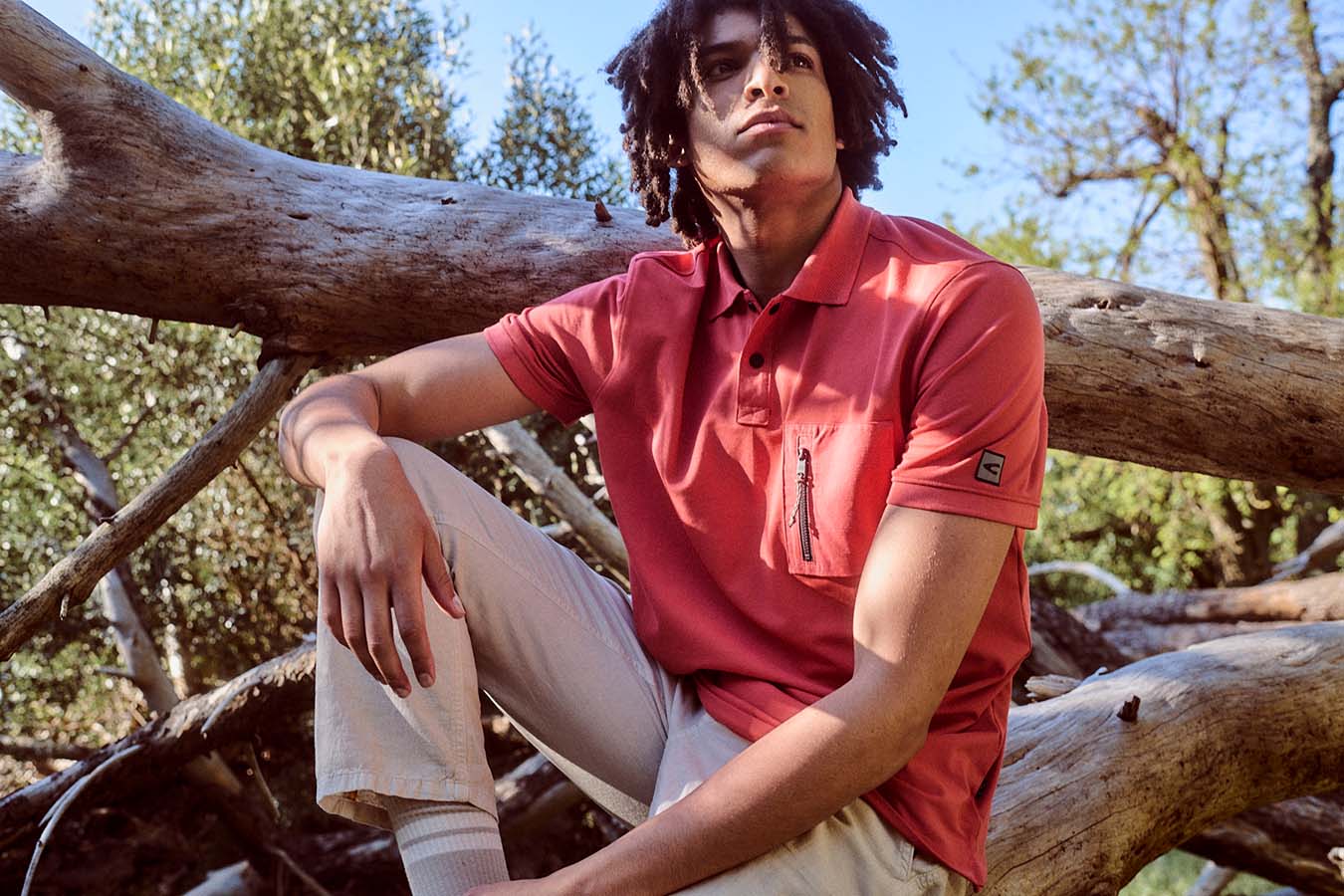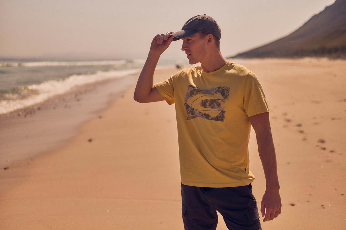 The camel active menswear ranges from the basic short-sleeved shirt in pistachio to the resort shirt with an art print in shades of blue to the short-sleeved shirt in a polo look in piqué with a graphic palm print in beige/khaki. The beach shorts with drawstring have a quick-dry function and mesh insert pockets. The ideal companion for jumping straight from your bike into the nearest lake, true to the camel active motto „Made For Daily Adventures“.