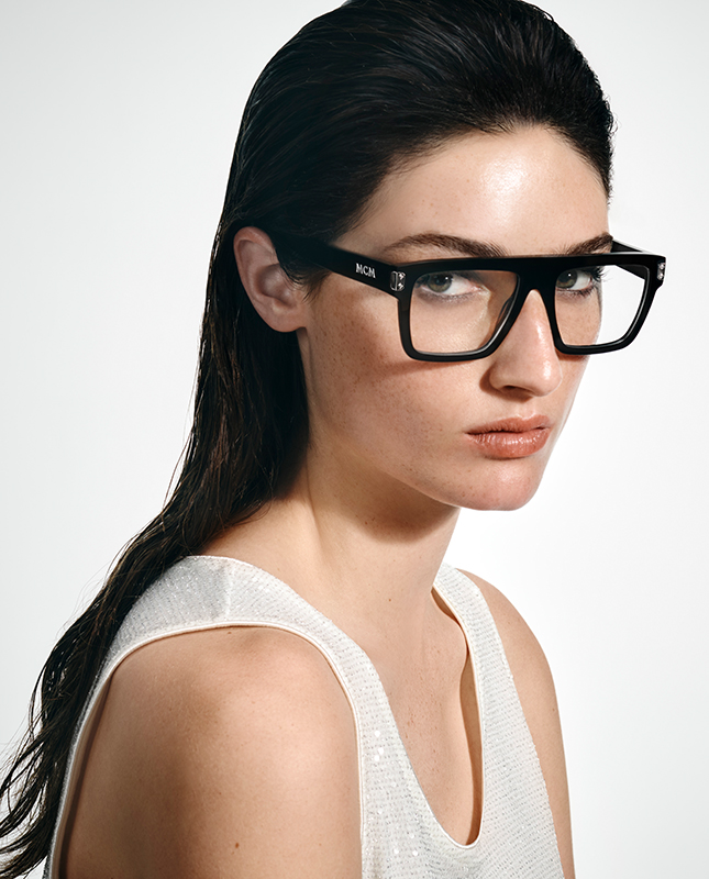 Iconic elements from the brand’s prestigious heritage in the luggage sector, become details that underline the elegance and constructive rigor of the frames. Metal pins and angular inserts, next to the reinterpretation of the distinctive logos of the brand, give these luxury frames a touch of spirit and lightness typical for the brand. Simple shapes inspired by Bauhaus are transported to a fresh sophisticated, modern aesthetic. MCM Eyewear further redefines the theme of travel and digital nomad living that the brand is known for.