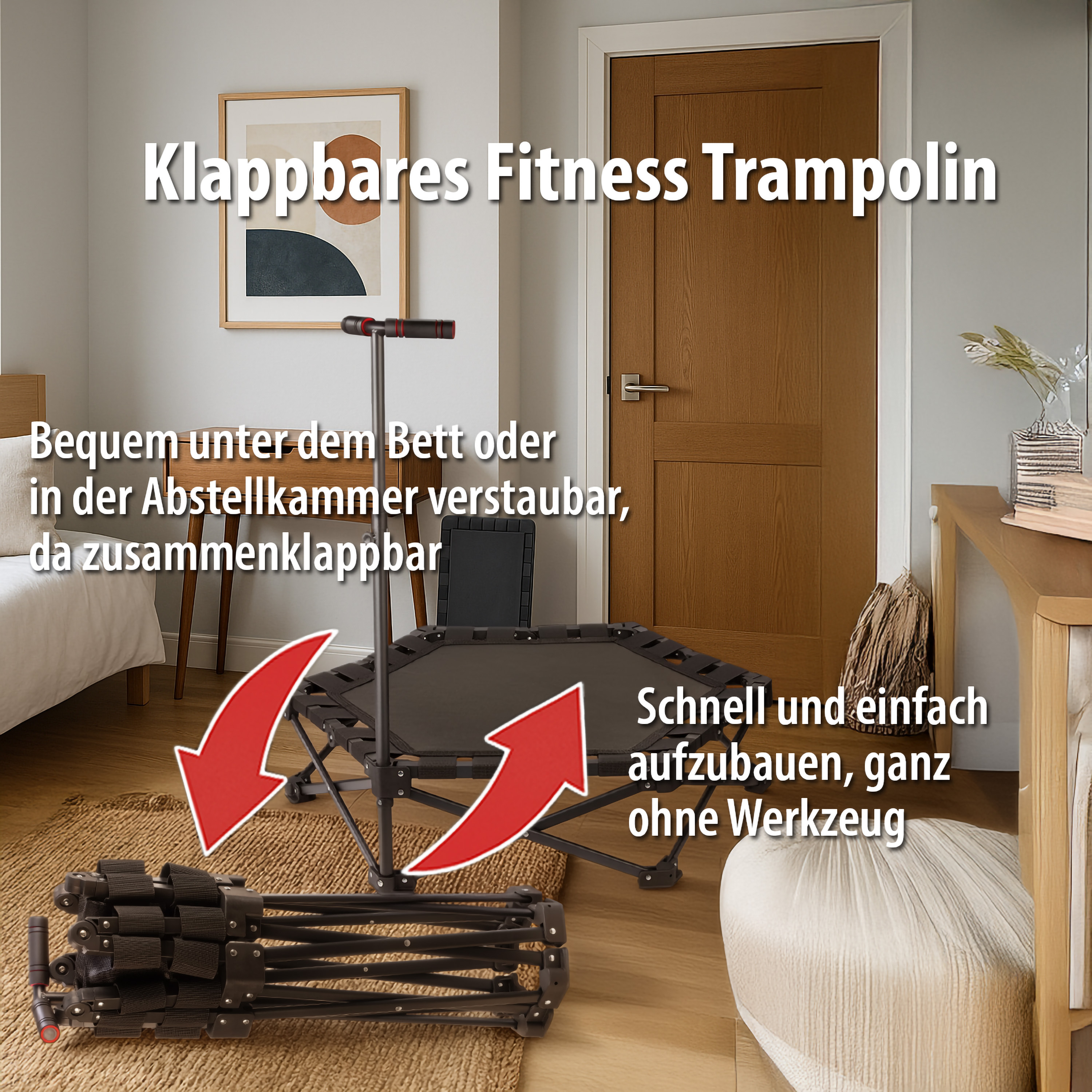 - Klappbares Fitness-Trampolin: perfekt für Workouts daheim