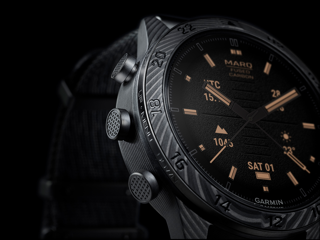 Garmin kündigt die MARQ Carbon Kollektion an. Drei luxuriöse, moderne Tool Watches, deren Gehäuse aus jeweils 130 Carbon-Schichten gefertigt sind. Die MARQ Carbon Kollektion – bestehend aus der MARQ Athlete, der MARQ Golfer und der MARQ Commander – verfügt neben dem besonderen Gehäuse über ein brillantes AMOLED-Touchdisplay, ein gewölbtes Saphirglas und Elemente aus Titanium Grade 5. Mit einzigartigen Funktionen für jeden Zeitmesser, einer Akkulaufzeit von bis zu 16 Tagen und in Manufakturqualität verarbeiteten Materialien wurden diese neuen Smartwatches für alle Abenteuer konzipiert, die das Leben bereithält.