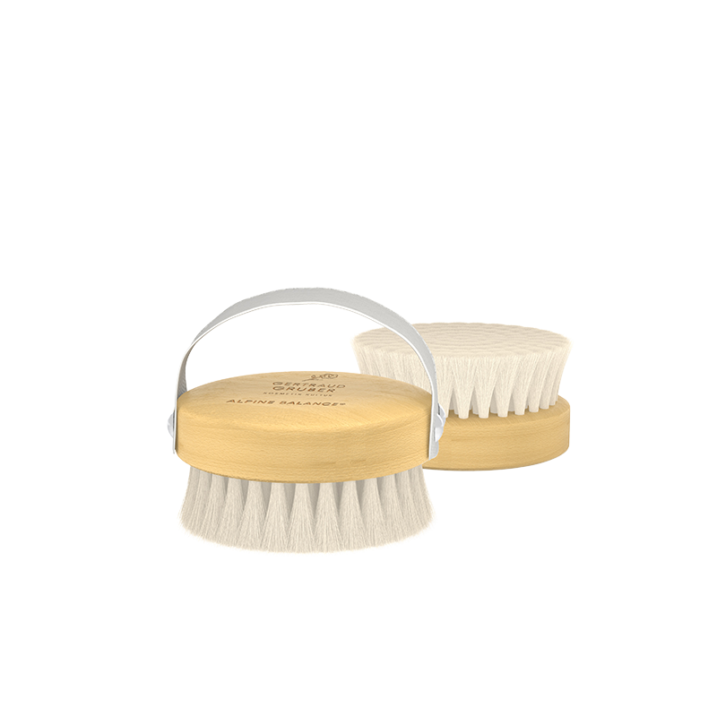 Die hochwertige Alpine Balance Massagebürste aus besonders weichem, natürlichem Ziegenhaar unterstützt den Lymphfluss und die Entschlackung des Gewebes auf sanfte Weise. Gleichzeitig regt sie die Durchblutung und den Hautstoffwechsel an, beruhigt das vegetative Nervensystem und hilft, Spannungen zu lösen. Im praktischen Set für die beidseitige Anwendung entfaltet sie ihre Wirkung besonders effektiv – für ein ganzheitlich belebendes Pflegeerlebnis