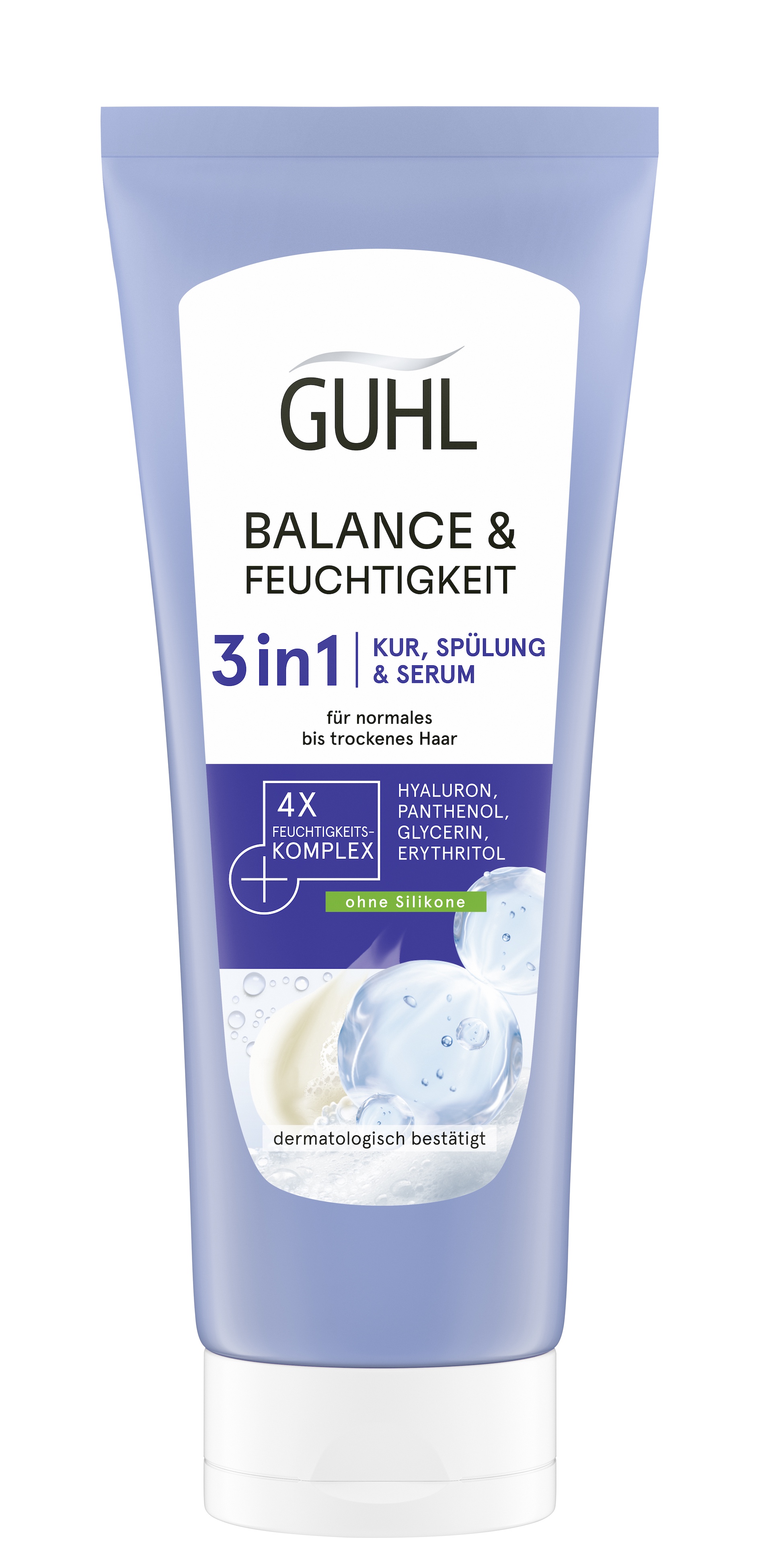 Als Antwort auf dieses wachsende Bedürfnis launcht Guhl die neue Linie Balance & Feuchtigkeit mit 4-fach Feuchtigkeits-Komplex. Hyaluron kommt dabei in veganer Form zum Einsatz, versorgt das Haar mit Feuchtigkeit und pflegt bis in die Spitzen. Auch Panthenol, ein aus der Hautpflege bewährter Inhaltsstoff, ist für seine beruhigenden und feuchtigkeitsgebenden Eigenschaften bekannt und sorgt zusätzlich für Geschmeidigkeit. Glycerin und Erythritol binden Feuchtigkeit mit einem Balance-Effekt und verbessern die Kämmbarkeit. Das verwöhnende Balance & Feuchtigkeit Shampoo ist sanft zur Kopfhaut, besonders ergiebig2 und entwickelt einen reichhaltigen, feinen Schaum. Ergänzt wird das Shampoo durch die 3in1 Kur, Spülung & Serum, die angepasst an moderne Bedürfnisse dank ihrer Multifunktionalität flexibel in unterschiedliche Pflegeroutinen passt: als Spülung für sofortige Feuchtigkeit, als Kur für Tiefenpflege oder als Serum für extra Feuchtigkeit und Hitzeschutz. Ein wohltuender Duft aus spritziger Mandarine und Bergamotte, getragen von einer frischen, floralen Note sowie warmem Amber, süßer Vanille und zartem Moschus, rundet den sinnlichen Pflegemoment ab.