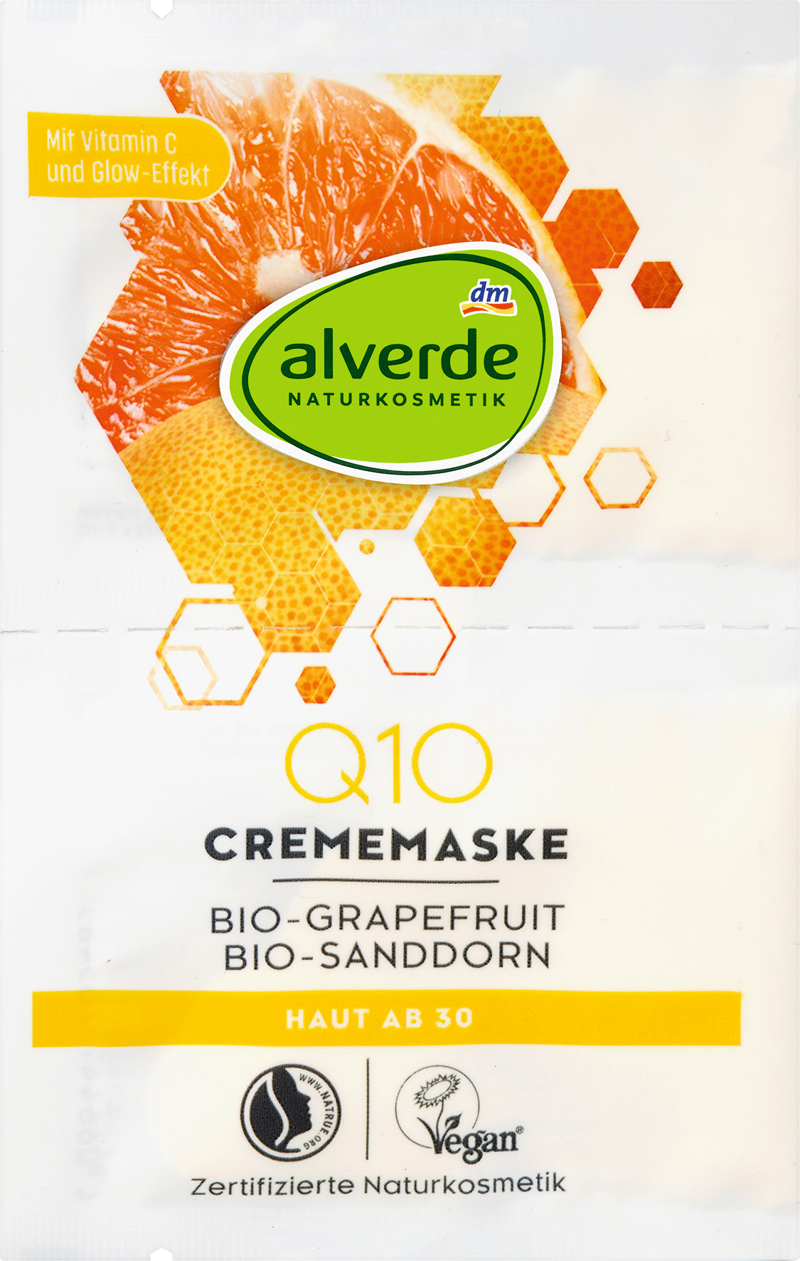 Ein Frische-Kick für die Haut: Die Gesichtsmaske Q10 mit Vitamin C verleiht eine Extraportion Energie und fördert ein strahlendes und ebenmäßiges Hautbild. Die Formulierung mit Coenzym Q10 wirkt einer frühzeitigen Hautalterung entgegen und hinterlässt ein geglättetes Hautgefühl. Vitamin C sorgt für einen belebenden und tollen Glow-Effekt. Die Maske mit Bio-Grapefruit-Extrakt, Bio-Sanddorn-Öl und Bio-Acerola-Extrakt versorgt die Haut mit intensiver Feuchtigkeit und mildert Trockenheitsfältchen. Für gepflegte Wohlfühl-Momente.