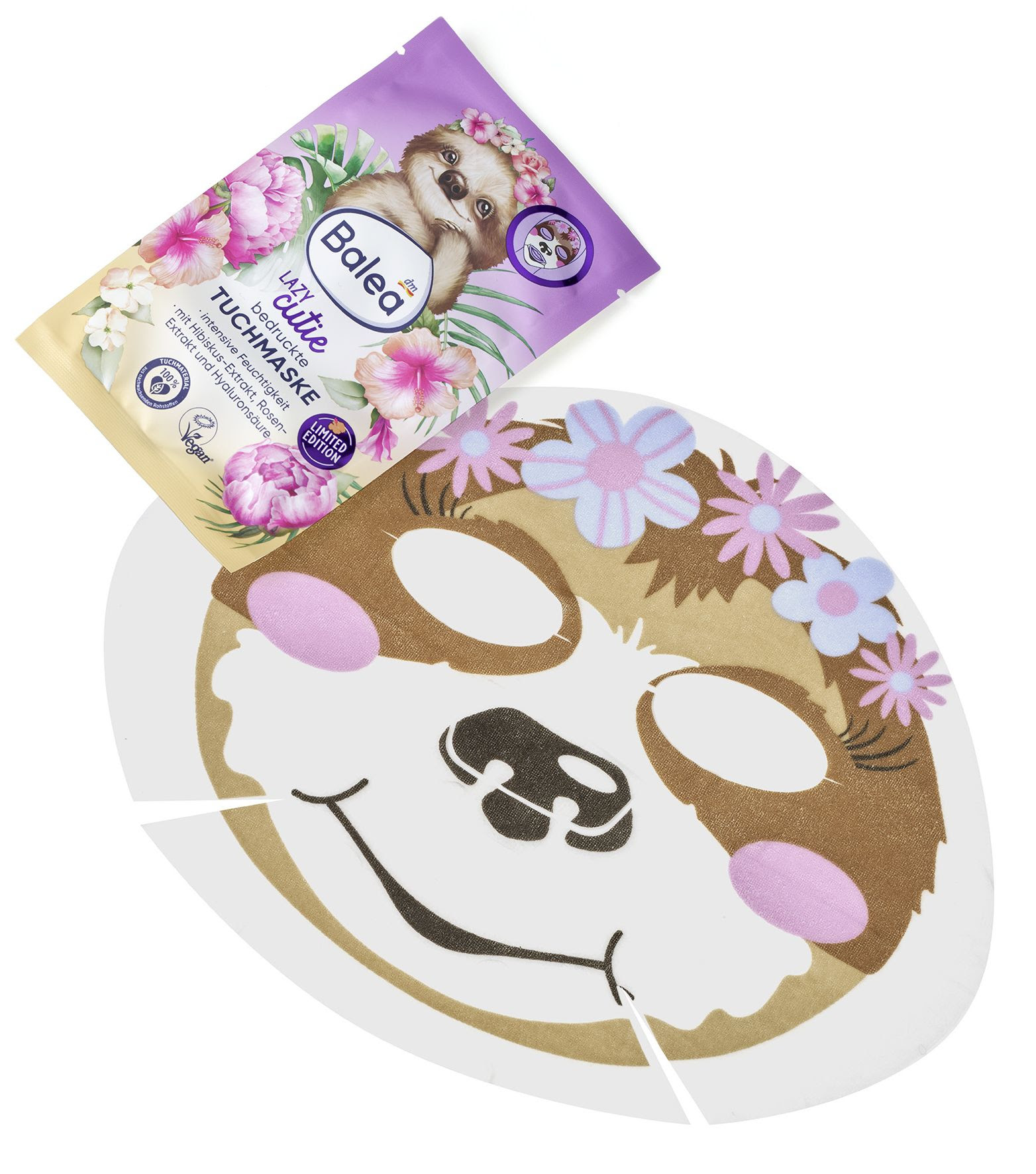 Die neue Tuchmaske Lazy Cutie von Balea bringt Entspannung und Pflege in Einklang. Inspiriert vom gemütlichen Lebensstil des Faultiers, lädt diese Maske dazu ein, die Hektik des Alltags loszulassen und jeden Moment bewusst zu genießen. Die bedruckte Tuchmaske mit süßem Faultier-Print schmiegt sich sanft an die Haut an und sorgt für eine optimale Aufnahme der Wirkstoffe. Die spezielle Pflege-Formel, angereichert mit Hyaluronsäure, Rosen- und Hibiskus-Extrakt, spendet intensive Feuchtigkeit und verwöhnt die Haut. Das Ergebnis ist ein frischer und strahlender Teint, der Gelassenheit und Pflege ausstrahlt.