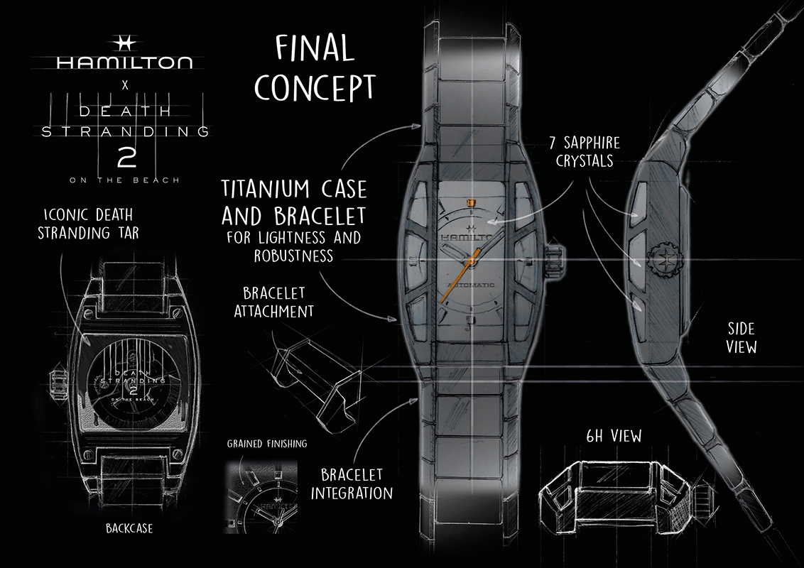 Given Hamilton’s long-standing, celebrated presence in the world of film, collaborating with KOJIMA PRODUCTIONS was an ideal match given the video game studio’s cinematic auteur approach. Hamilton’s work with the creators of Dune: Part Two, Indiana Jones and the Wheel of Fortune, and Interstellar alerted the studio to the brand and the potential for a horological collaboration.