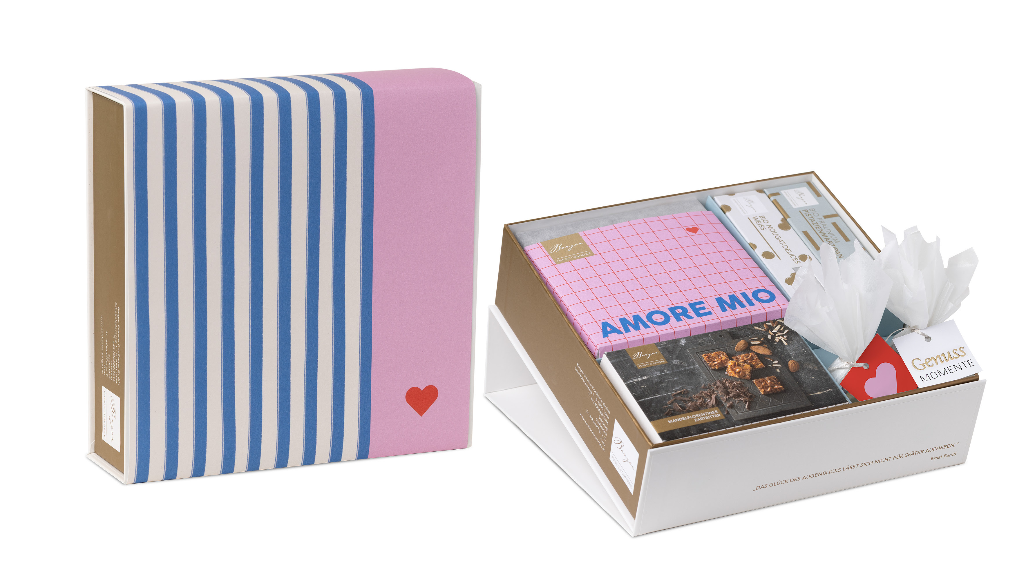 In der kalten Jahreszeit geben wir warmen Gefühlen Raum: Der Valentinstag zelebriert die Liebe, und bei Berger Feinste Confiserie präsentiert sich die Kollektion unter dem verspielten Motto „AMORE MIO“.