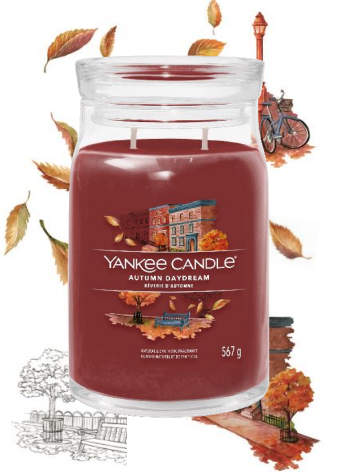Mit der Kollektion reichhaltiger und holziger Düfte kommt die Sehnsucht nach einem Spaziergang durch den Park auf, umgeben von farbenfrohen Bäumen und kühler Herbstluft. Das Daydreaming of Autumn Sortiment ist in verschiedenen Größen in den neuen Signature Designs erhältlich, darunter große und mittlere Gläser, große und 5-Docht-Tumbler, Original Votivkerzen und Wax Melts.