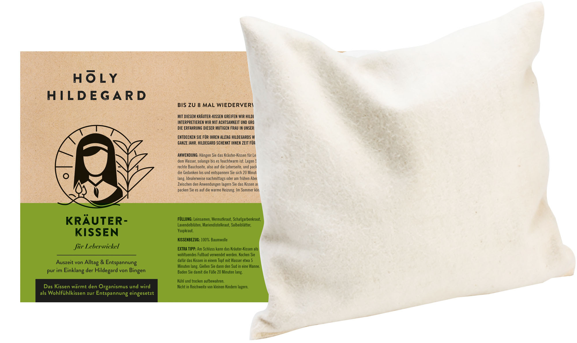 Das Kräuterkissen (16,99 Euro), das die ätherischen Öle von Schafgarbe, Mariendistel, Ysop und weiterer wohltuender Kräuter enthält, einfach in ein Sieb legen und über einen Topf mit kochendem Wasser positionieren, bis es feuchtwarm ist. Dann das Kräuterkissen auf die rechte Bauchseite, also auf die Leber, legen und sich selbst für 20 Minuten warm einpacken. Dieses Prozedere an sieben aufeinanderfolgenden Tagen wiederholen. Zwischen den Anwendungen das Kissen einfach an der Luft trocknen lassen.