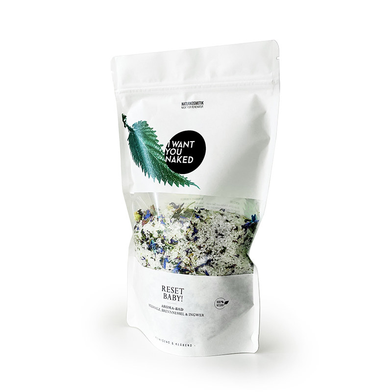 Einfach alles auf Anfang setzen! Kein Problem mit diesem einzigartigen Aroma-Bad aus der I WANT YOU NAKED Manufaktur. Mit Brennnessel, Brennnesselsamen, Kornblume, Hortensie, Zitronenverbene und Ingwer sowie mineralstoSreichen Salzen und feinen Ölen liefert der Badzusatz alles, was man für eine geballte Ladung natürliche Entgiftung braucht. Und das ohne großen Kraftaufwand ganz entspannt über die Haut. Einmal raus mit dem ganzen Ballast, und rein mit den guten WirkstoSen – für Körper und Geist im Einklang.