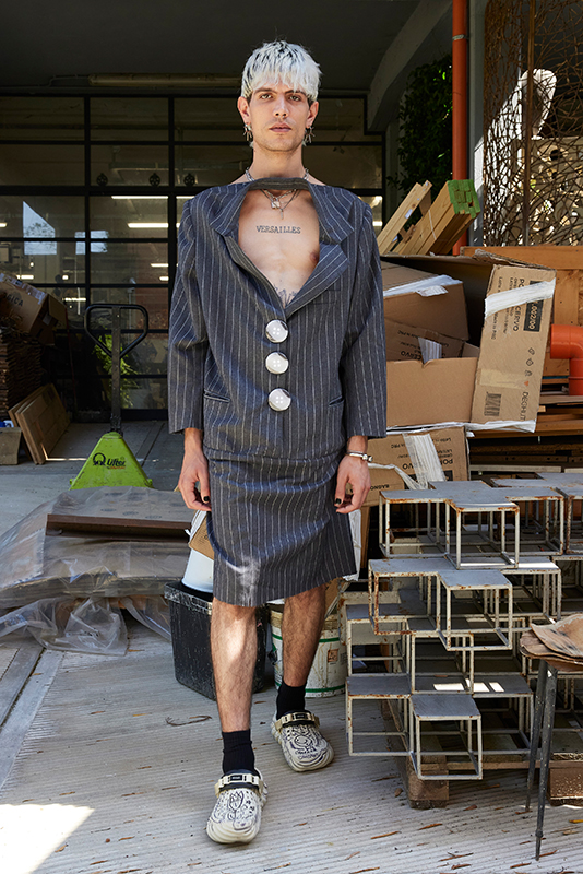 …and yes, it’s true: we’ve done a ‘Margielata’! During the creation of the whole thing, we realised that we had come across some „vocabulary“ written by the last fashion revolutionary (Martin, not the brand): out of scale details, white paint, trompe l’oeil, the patina of time, but above all a certain idea of „wardrobe“, with some precise clothing statements, but never the same as itself. Style is made up of repetition, and our goal is clear: a new Simon Cracker style.