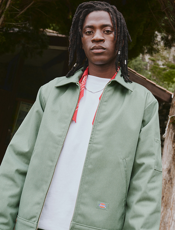 The 874 Pants have long been an essential not only in the skate scene. Dickies celebrates the trousers as an icon piece and provides detailed care tips on their website for guaranteed durability. The fabric of the 874 is the so-called 66th cloth material, which belongs to the twill family. It is considered extremely robust and wrinkle-free and is highly valued in the workwear scene. No longer exclusively used in trousers, the material can also be found in Dickies Eisenhower jackets as well as skirts and shorts. Always kept in earth tones, you can create monochrome and timeless sets that suit every day situation.