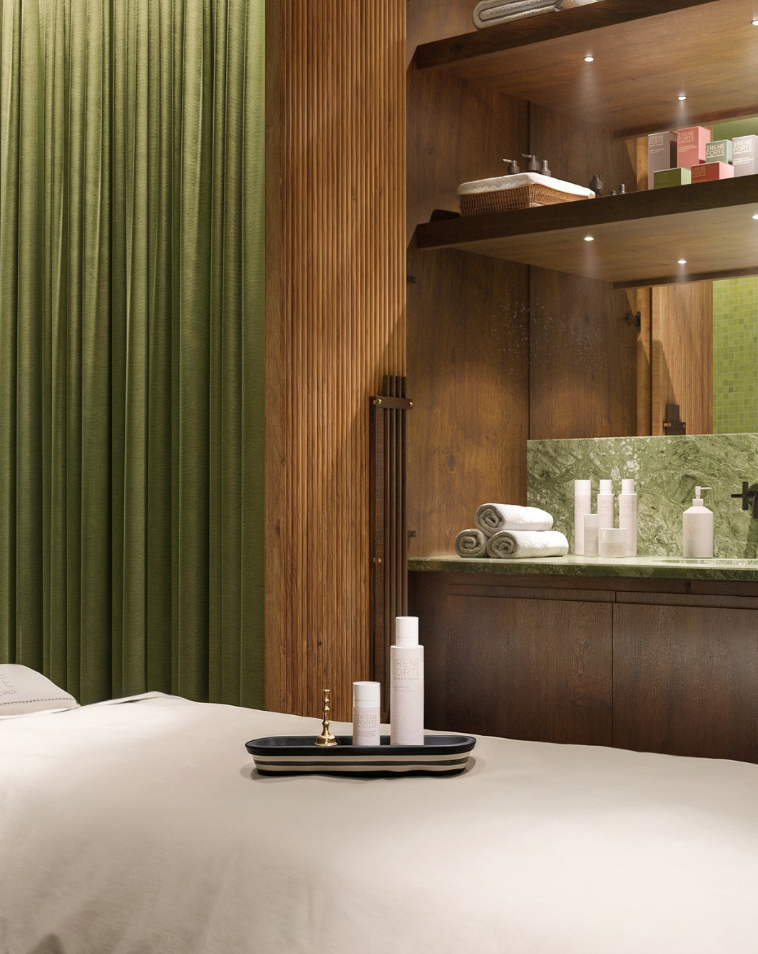 Designed by Paolo Moschino in collaboration with Olga Polizzi, the tranquil interiors are inspired by nature with their organic forms. Earthy terracotta tones blend seamlessly with honey-colored wood, chocolate-brown leather, and curved walls that envelop the body and soothe the mind. The treatments combine scientifically grounded insights and clinical precision with Sicilian warmth and the Mediterranean lifestyle.