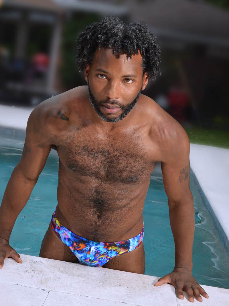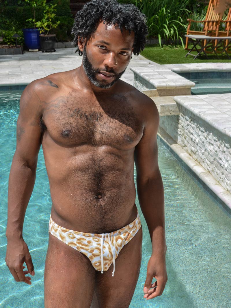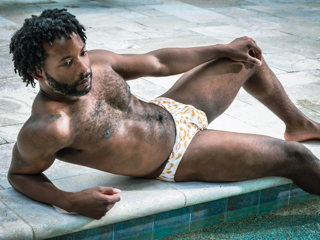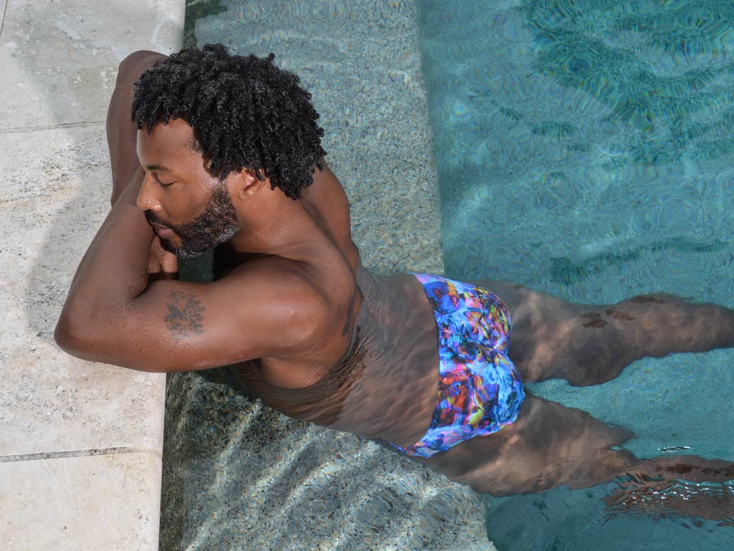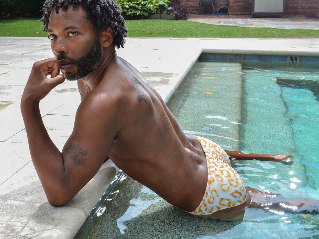 My swimwear work came about when a friend asked if I could sew some dancer costumes for her… I learned what I needed to about working with spandex- and started putting together patterns I’ve made MANY different shapes over the years- but for my online shop, I keep shapes very simple. Honestly, the point is to put something together that people can try and have confidence in, with out having to make too many choices without being able to try the garments on. Generally, I only buy two yards of a print for the swimwear line- mainly so the pieces are VERY limited… the model keeps the one they wear for the shoot- that leaves between 8-10 copies for me to sell…