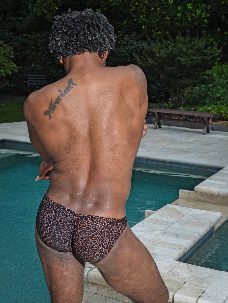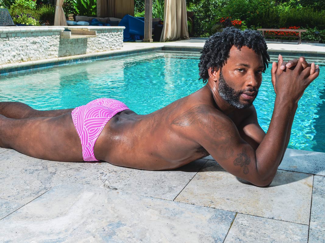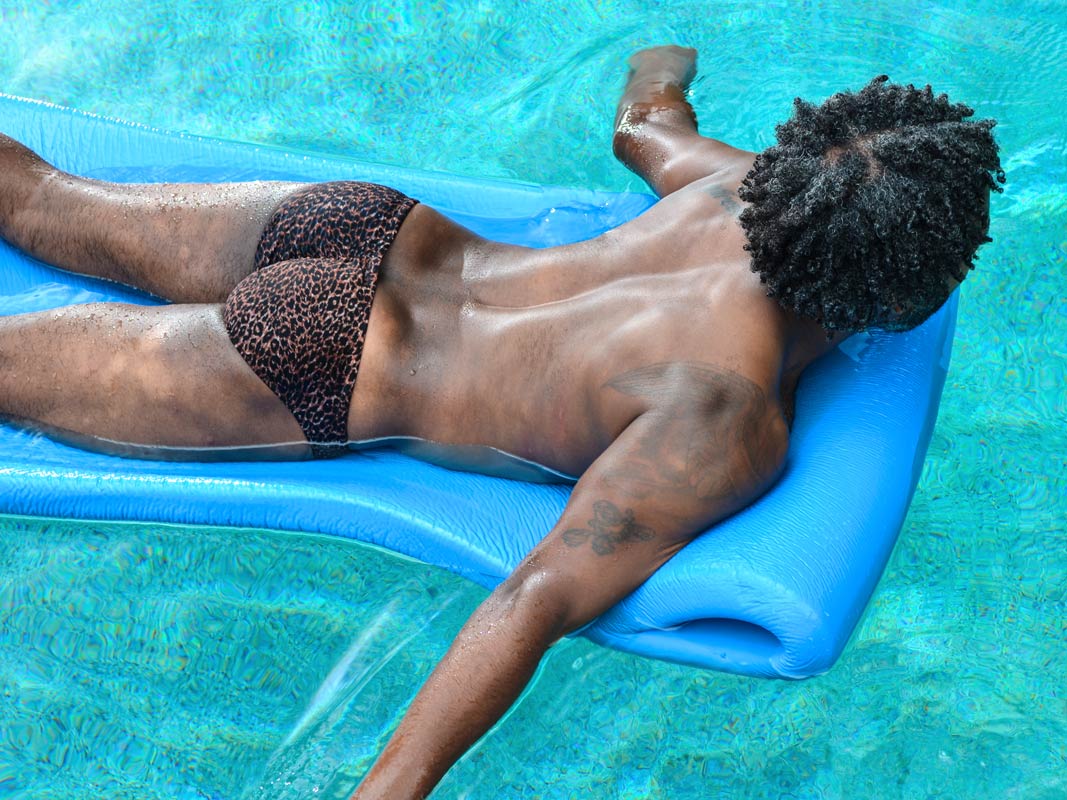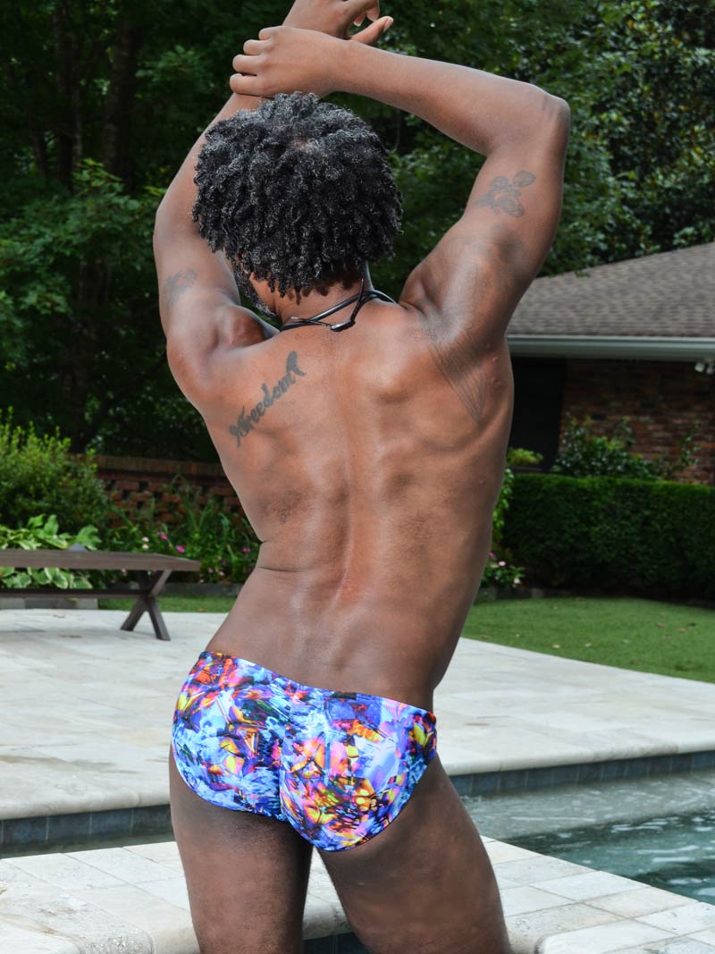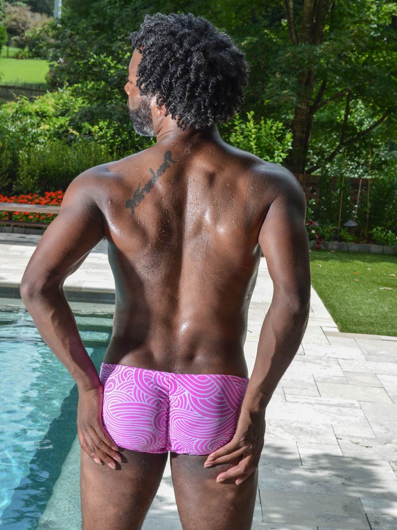 My swimwear work came about when a friend asked if I could sew some dancer costumes for her… I learned what I needed to about working with spandex- and started putting together patterns I’ve made MANY different shapes over the years- but for my online shop, I keep shapes very simple. Honestly, the point is to put something together that people can try and have confidence in, with out having to make too many choices without being able to try the garments on. Generally, I only buy two yards of a print for the swimwear line- mainly so the pieces are VERY limited… the model keeps the one they wear for the shoot- that leaves between 8-10 copies for me to sell…