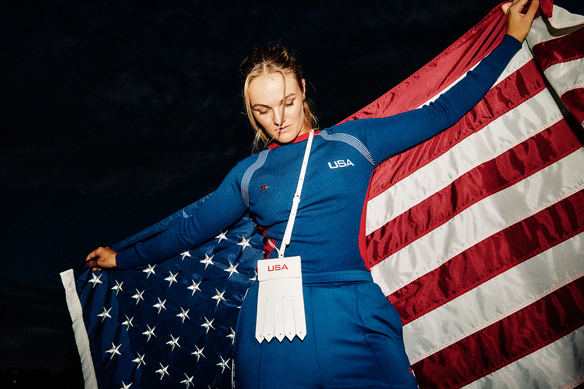 “With this campaign, we’re not just outfitting American athletes—we’re also hoping to immerse fans in the games spirit well ahead of the torch lighting in Paris this summer,” adds Meyer. “We aim to create a ripple effect of excitement that travels from our clothes to every individual cheering in the stands or at home.”