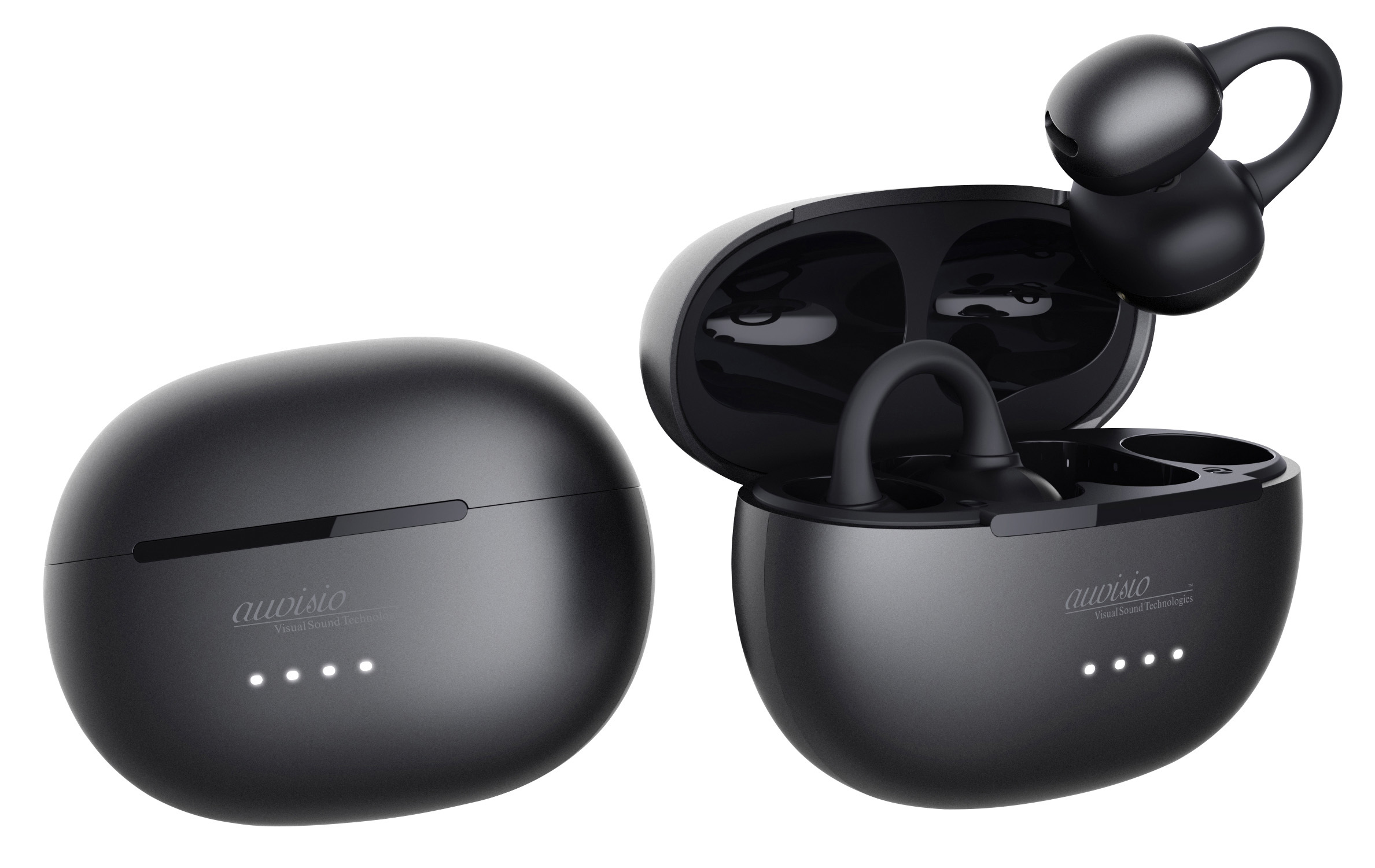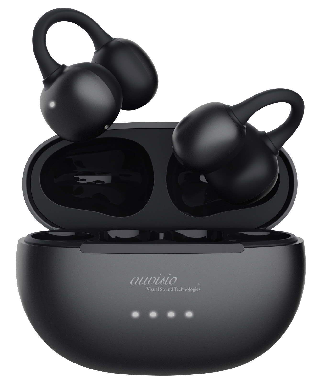 Das auvisio Open-Ear Clip-on-Stereo-Headset, Bluetooth 6.0 und Freisprechen mit Ladecase