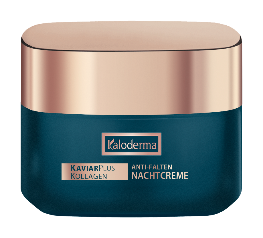 Die regenerierende KaviarPlus Kollagen Anti-Aging Nachtcreme von Kaloderma mit den Inhaltsstoffen Kaviar-Extrakt, Tiefsee-Mineralien und einem speziellen Algen-Aktivkomplex verwöhnt die Haut. Die Kombination aus Kollagen, purer Hyaluronsäure und einem Aqua-Vital-Booster vervollständigt die hochwirksame Formel der Anti-Aging Nachtcreme. So werden Spannkraft und Elastizität müder Haut gestärkt und verbessert.
