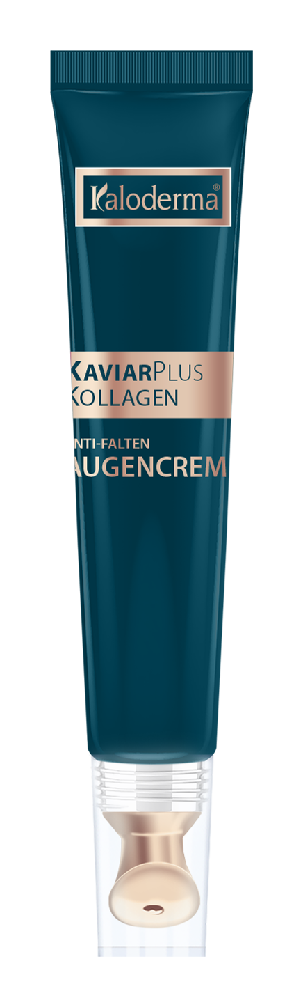 Die KaviarPlus Kollagen Anti-Aging Augencreme von Kaloderma schenkt dank raffinierter Inhaltsstoffe wie Kaviar-Extrakt, Tiefsee-Mineralien und eines speziellen Algen-Aktivkomplexes eine glatte, ebenmäßige und feste Augenpartie. In Kombination mit Kollagen, einem speziellen Kollagen-Aktivator, purer Hyaluronsäure und einem Aqua-Vital-Booster schützt die Anti-Aging Augenpflege die zarte Haut um die Augen und wirkt direkt und effektiv gegen Falten. Bereits bestehende Fältchen und Linien werden gleichzeitig reduziert. Der integrierte Metall-Applikator kühlt und pflegt die Augenpartie bereits während des Auftragens.