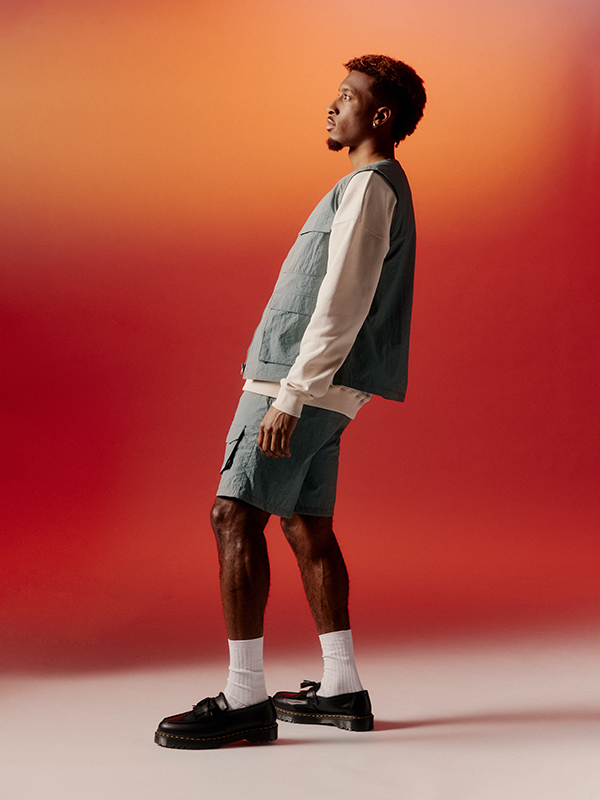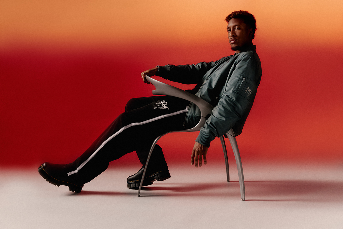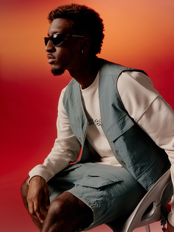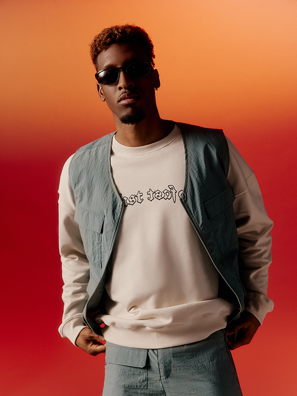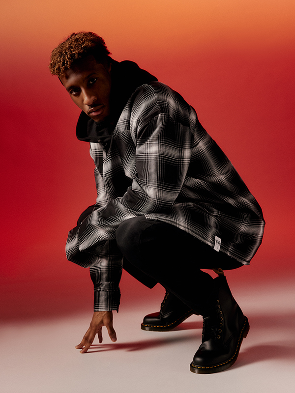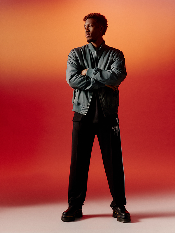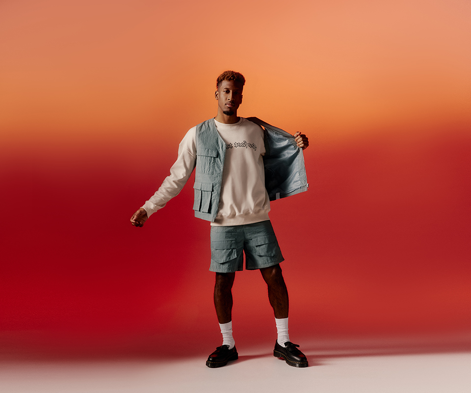 Die lässigen Pieces werden von Kingsley Coman selbst im Fotostudio des FC Bayern München in Szene gesetzt. Das Kampagnenshooting greift erneut die orange Lieblingsfarbe des Fußballprofis auf – Maroon wird mithilfe dimensionalen Ausleuchtens zu einem interessanten Farbspektrum. Dieses bildet den Hintergrund des gesamten Setups und verleiht den Pieces einen hochwertigen und stylischen Look. Auch bei der Inszenierung seiner Pieces beweist Kingsley sein Gespür für Fashion und so entstanden ausdrucksstarke Kampagnenbilder für seine erste Kollektion mit ABOUT YOU.