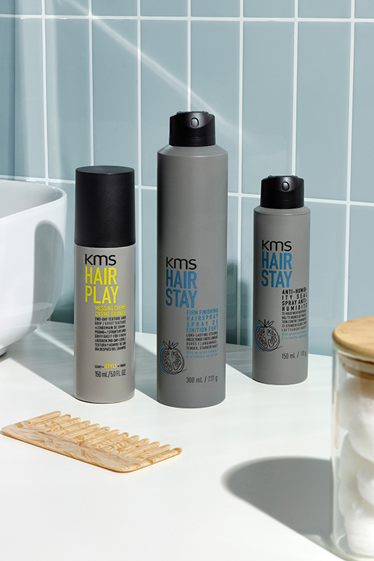 KMS HAIR stellt eine neue Formulierung für die HairStay-Serie vor, die mit upgecycelter Tomate angereichert ist. Dieses Antioxidans schützt vor UV-Strahlen und Umwelteinflüssen. Neu im Sortiment ist das HairStay Dry Oil Hairspray, das spürbaren Halt, Feuchtigkeit und ein glänzendes Finish bietet. Es sorgt für flexiblen, leichten Halt und schützt bis zu 72 Stunden vor Frizz.