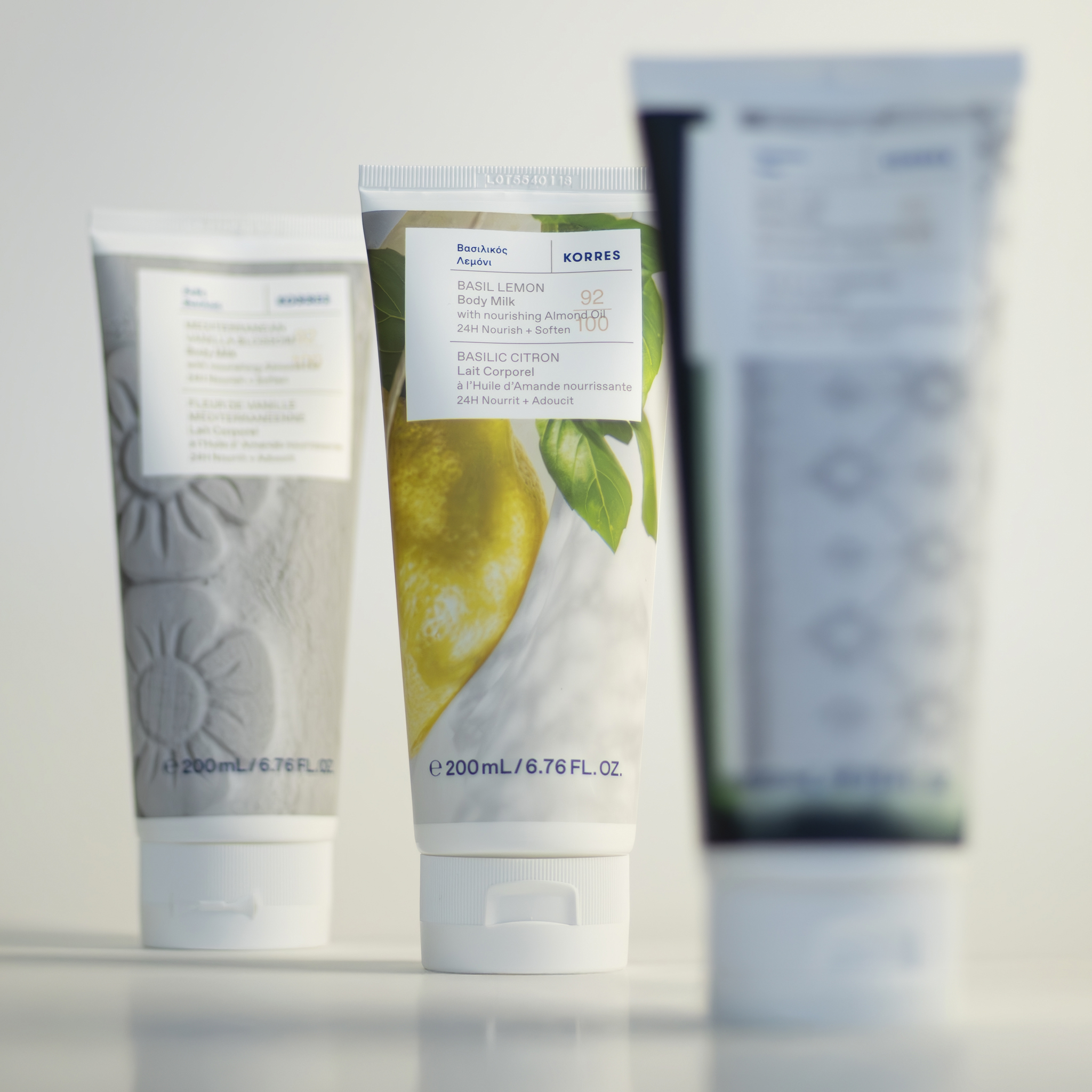 Neben dem neuen Design und den weiterentwickelten Formulierungen erweitert KORRES das Sortiment um mehrere neue Duftvarianten. Neu erhältlich sind Mediterranean Vanilla Blossom, Citrus, Sea Lavender (exklusiv als 250 ml Duschgel) sowie Yoghurt (exklusiv als 400 ml Duschgel).