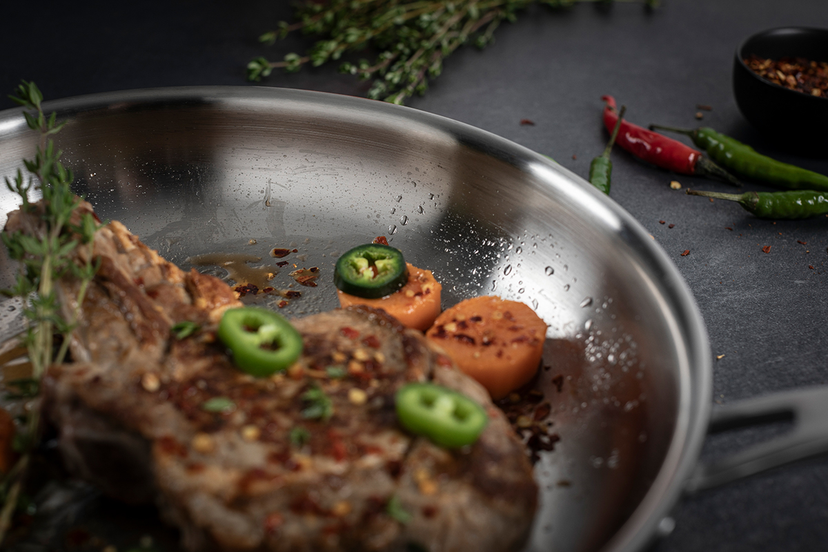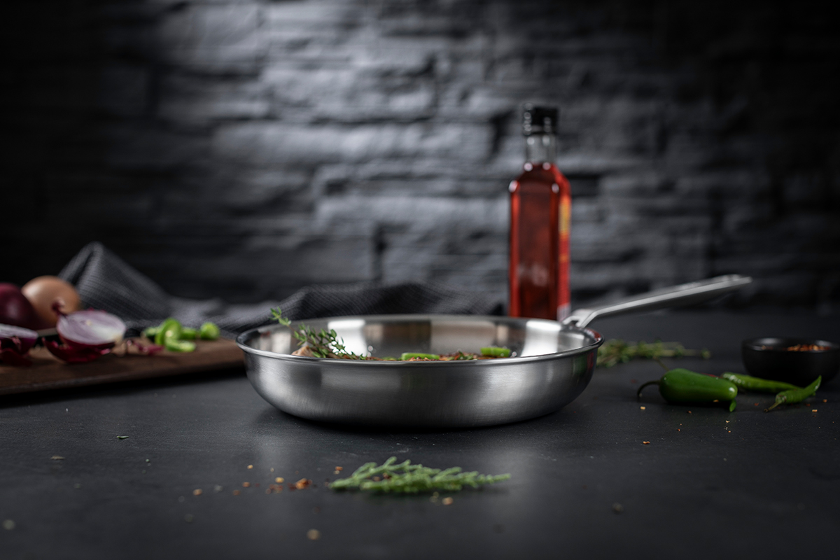 - Langlebig, robust: Edelstahlpfanne sind extrem widerstandsfähig, geschmacks- und geruchsneutral und haben eine gleichmäßige Wärmeverteilung.