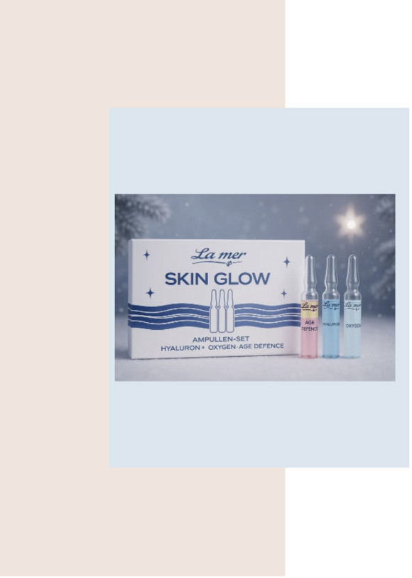 Das Skin Glow Ampullen Set (3 x 2 ml) ist ideal als Geschenkidee oder für einen strahlenden Auftritt an den Feiertagen. Das Set vereint drei aufeinander abgestimmte Ampullen für sichtbar vitalisierte Haut: