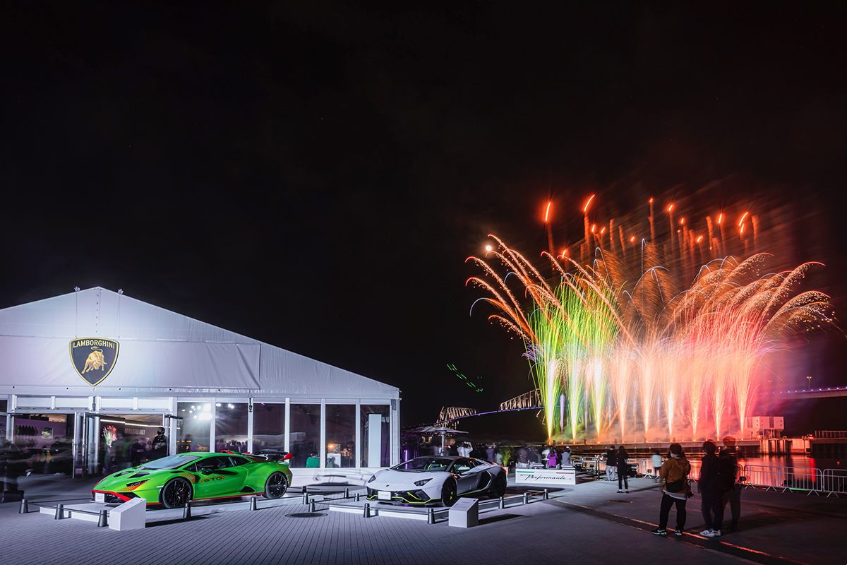 The program opened with sunset driving parade of Lamborghini cars through Tokyo’s streets. More than 150 Lamborghinis took part, thrilling onlookers and participants, including the limited editions Countach LPI 800-4[2], Aventador Ultimae LP 750-4[3] and Sian FKP 37[4], alongside current models such as Huracán STO[5] and classics such as a Diablo GTR and Countach 25th Anniversary. Starting from Ariake Garden and passing through Toranomon, Hibiya, Yurakucho and Ginza to arrive at the Sea Forest Waterway, the procession then joined the other Lamborghini cars already on display with a formal welcome from Automobili Lamborghini senior management, visiting Japan especially for the important event: Chairman and CEO Stephan Winkelmann, Chief Marketing and Sales Officer Federico Foschini.
