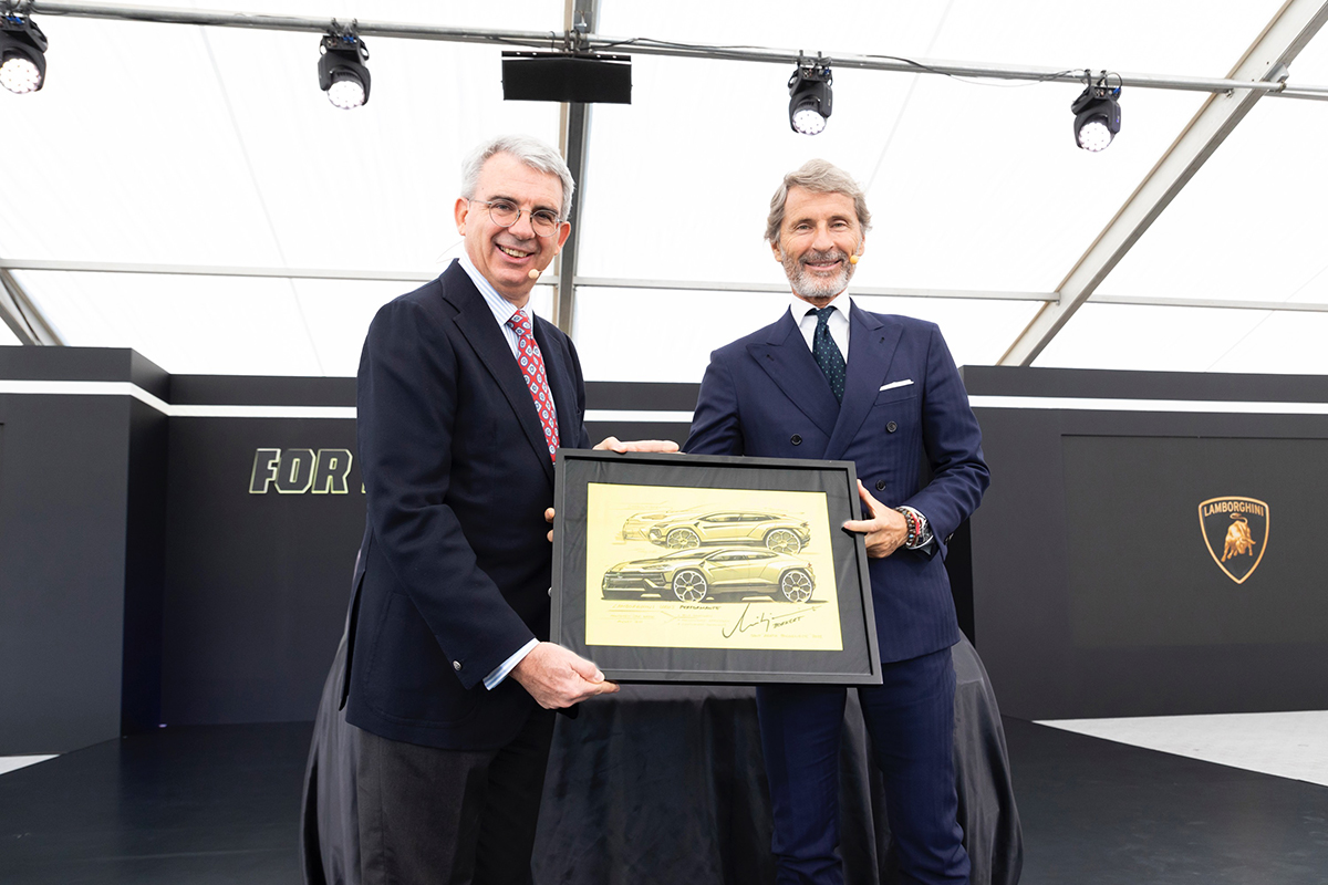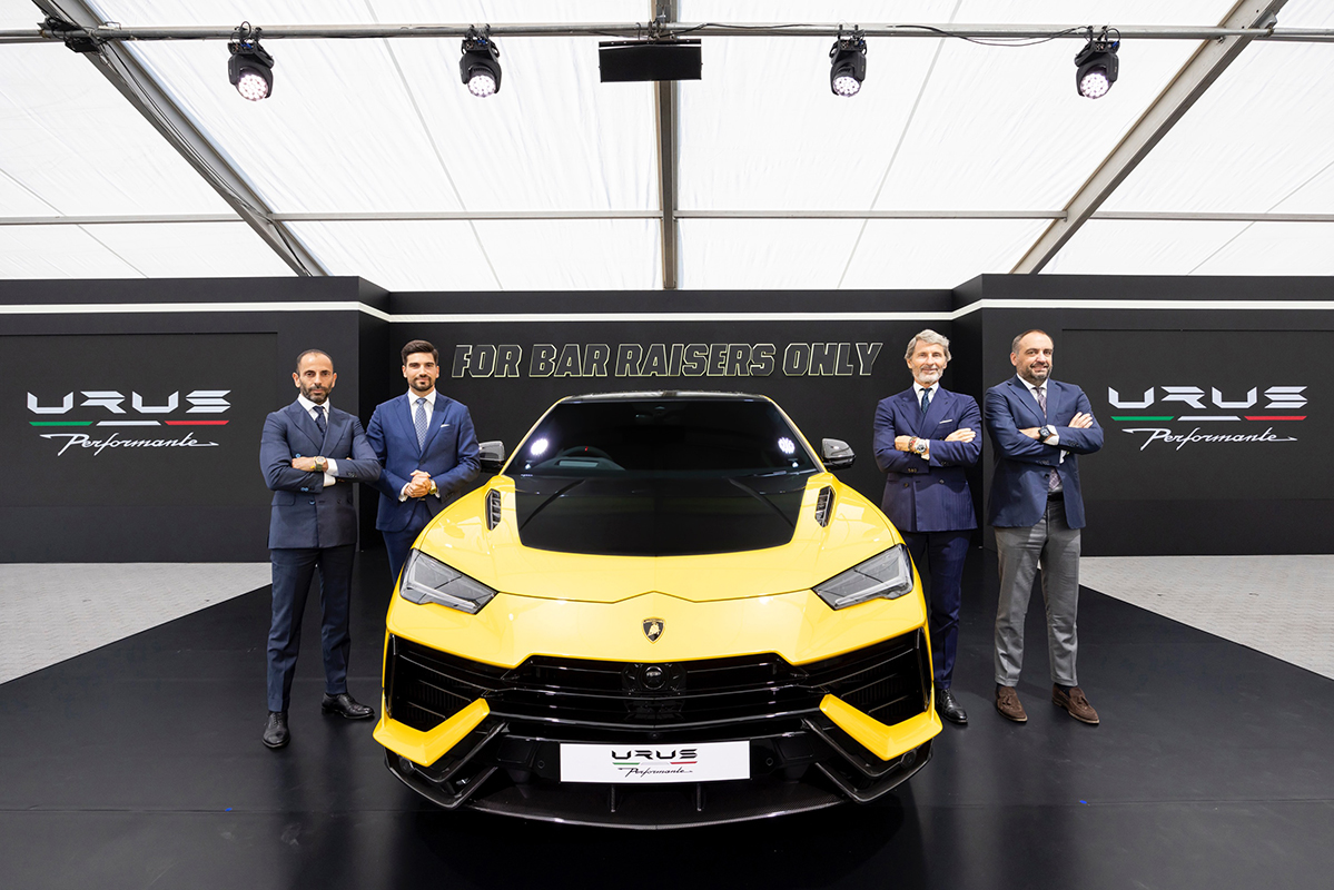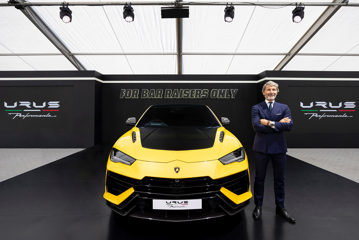 The new Urus Performante was formally presented to more than 600 guests by Stephan Winkelmann. The new Super SUV model, with increased power to 666 CV and weight reduced by 47 kg features extensive carbon fiber and a best-in-segment weight-to-power ratio. Accelerating from 0-100km/h in just 3.3 secs and braking from 100km/h to a standstill in 32.9 m, the Urus Performante produces 850 Nm of torque at 2,300 to 4,500 rpm, with its benchmarking longitudinal abilities including a top speed of 306 km/h matched by its responsiveness, handling and stability. Recently setting a new record in the production-spec SUV category on the Pikes Peak International Hill Climb course, the Urus Performante was shown at Lamborghini Day Japan together with its historic predecessor, the Lamborghini LM 002.