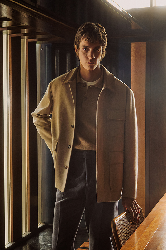 Lardini’s Fall/Winter 2025/26 men’s collection combines timeless elegance with modern functionality, appealing to men who prioritize substance over appearance and quality over fleeting trends. Double-breasted blazers with elegant buttons, comfortably tailored suits (also available as three-piece suits), and classic coats such as the Ulster, Caban, and trench coat-inspired styles combine familiar structures with surprising lightness. Workwear-inspired jackets, bomber jackets, and overshirt jackets impress with comfort, versatility, and high-quality materials, while twinsets and knitwear, including alpaca herringbone, bouclé with subtle contrasts, and cashmere blends, offer a contemporary reinterpretation of classic silhouettes. Denim is precisely shaped and perfectly finished.