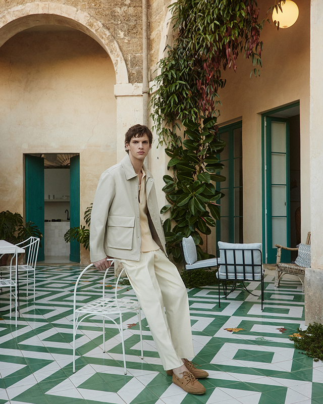 A harmonious season triumphantly brings to mind the slow, relaxed pace of certain French Riviera resorts, to which Luigi Lardini has looked back for inspiration, but without any form of nostalgia. And so this décontracté spirit translates into blazers without internal structures, as casual as a cardigan even if perfectly cut with a double-breasted front, worn over rounded trousers, under open-necked shirts which are in turn worn over a visible tank top. The focus on a ‘combinatory’ wardrobe, where you can match different elements to suit your mood and desires, is apparent in the layering methodology as a contemporary solution for a modern, serene wardrobe that is cosmopolitan in its studied nonchalance. Even suits and dinner jackets surrender to the languid awareness that today’s identity is expressed in multiple ways that are never uniform.