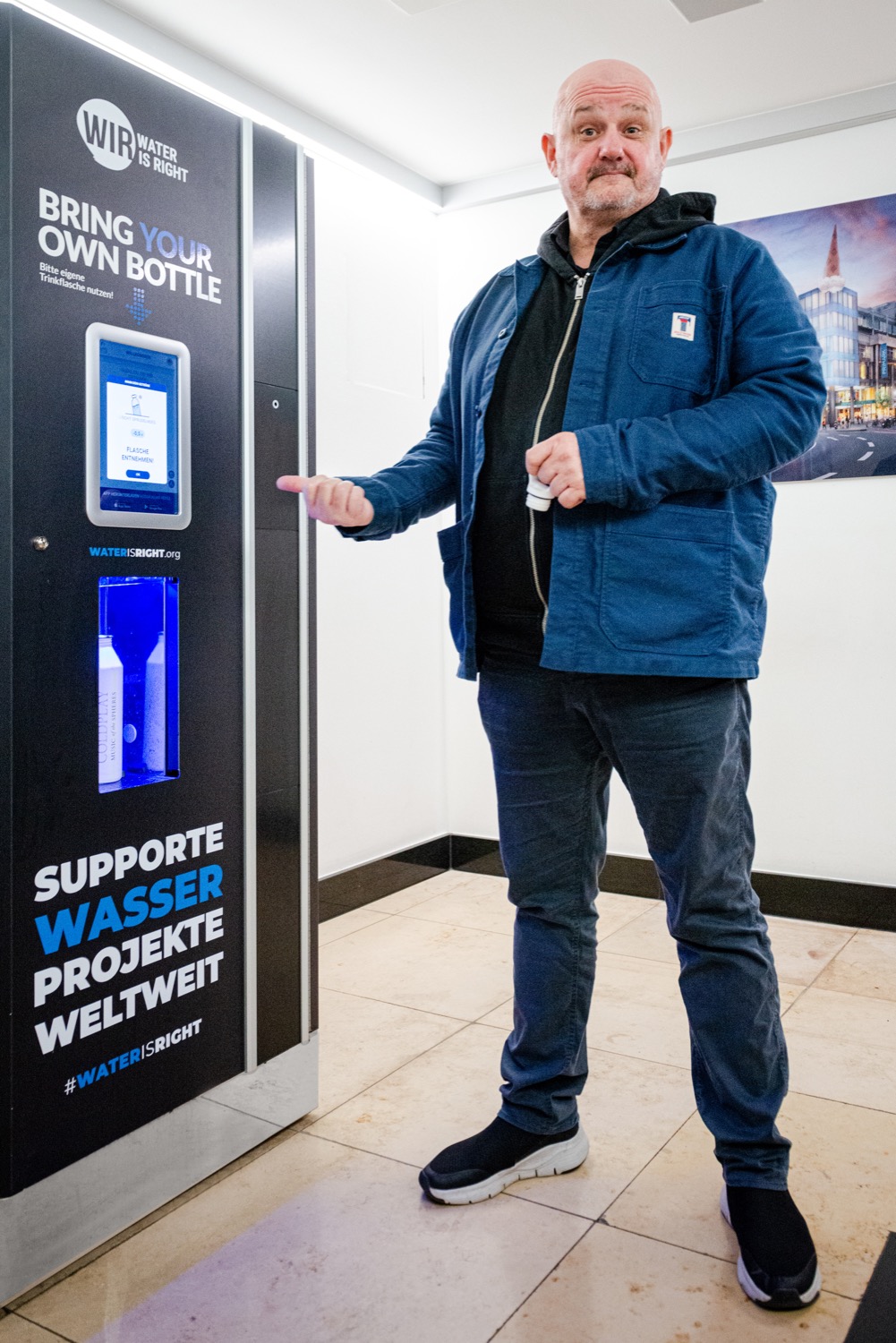 Um die Menschen in Köln bereits jetzt auf das Projekt aufmerksam zu machen, steht im Basement der Neumarkt Galerie seit Anfang März ein WIR Aquapoint. Center-Besucher/- innen können sich dort kostenfrei Trinkwasser in ihre eigene Flasche abfüllen. Mit dem Betrieb des Automaten unterstützt die Neumarkt Galerie die WIR Foundation monetär. „Was hierbei außerdem ganz wichtig ist“, betont Rolf Stahlhofen: „Dank der Zusage der Deka, in der Neumarkt Galerie Köln den ersten WIR Aquapoint Deutschlands aufzustellen, haben wir ein erstes Referenzprojekt. Daraus können wir viele Leads generieren und dann hoffentlich viele weitere Aquapoints in der ganzen Welt aufstellen. Danke dafür!“