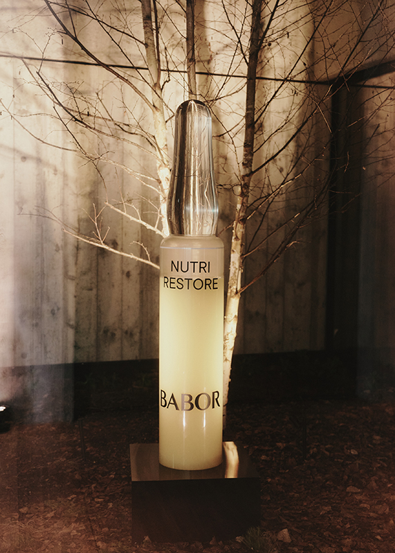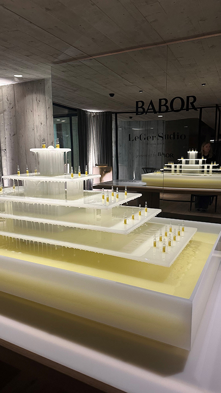 Passend zur Premium-Ausrichtung von LeGer Studio wurde das Event in Zusammenarbeit mit BABOR realisiert. Im eigens gestalteten BABOR Brand Space konnten die Gäste die neue Ampullen Innovation der Marke kennenlernen. Die Nutri Restore Ampulle gilt als Retreat für die Haut. Neben der Produktpräsentation gab es die Möglichkeit individueller Hautanalysen und Infusionen von Expert:innen – eine perfekte Ergänzung zu der Mode, die für Selbstbewusstsein und Natürlichkeit steht.