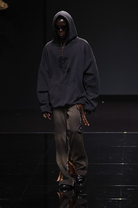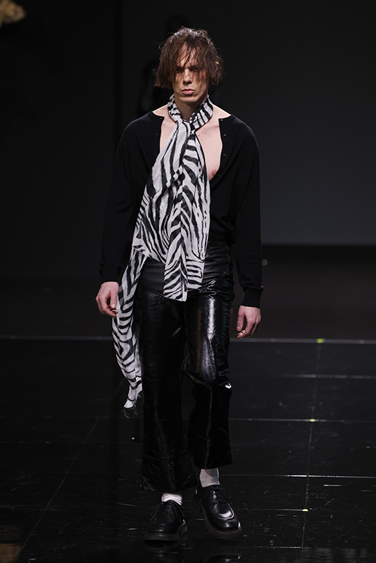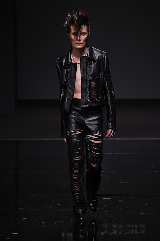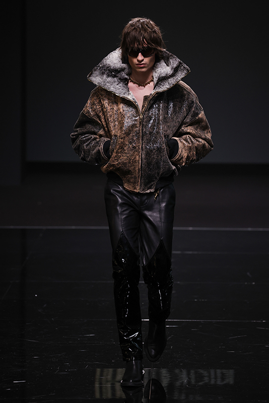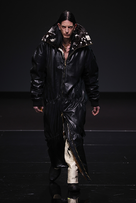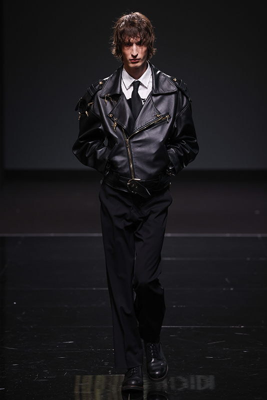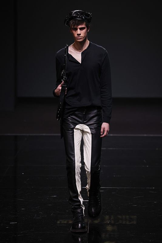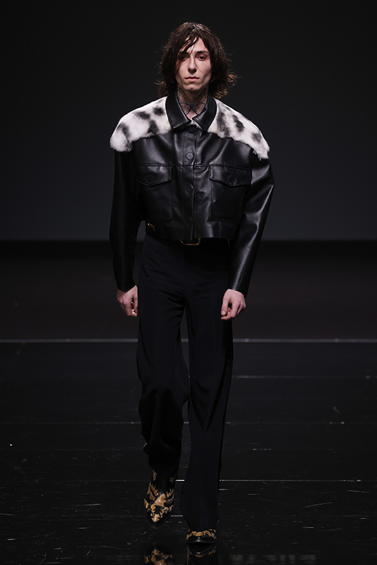 The collection was preceded by a short film and interview of Leonardo Valentini released on 8 January (the designer’s date of birth), which recounts his creative journey. Built on a bivalent theme, balanced between the fairytale of excess and the cruelty of life, he manages to translate the story told into fashion by using fine leathers, embroideries, studs and furs as the predominant elements. The collection will also present a brand-new print pattern with stains, to represent the dirtyness of the soul and echoing the name of the collection.