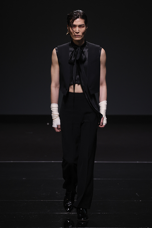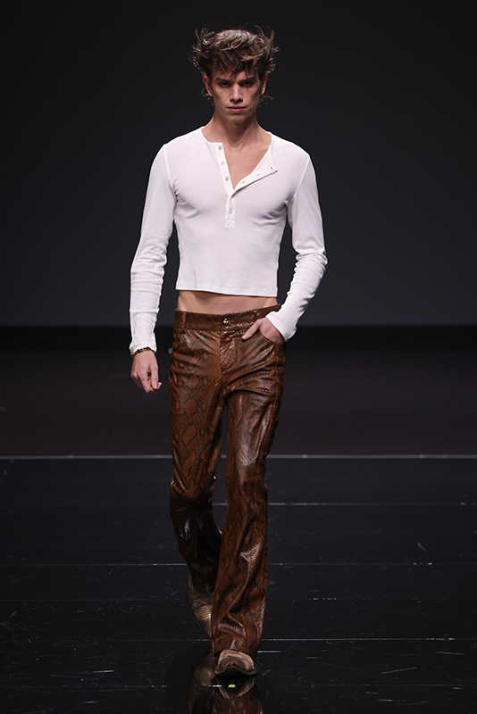 After last year’s performance with Animaux Formidables, LEONARDOVALENTINI renews its connection with the world of music and performance by accompanying the show with an exclusive performance by singer SETHU accompanied by guitarist and brother Jiz. Accompanied by guitarist and brother Jiz. Sethu, known to the general public thanks to his participation in Sanremo 2023, is one of the most promising and beloved artists from Gen Z, thanks to his well-defined musical and aesthetic world that ranges from restlessness to euphoria: a mood that does not need to be labeled in a precise genre converging into a fluid style full of contaminations