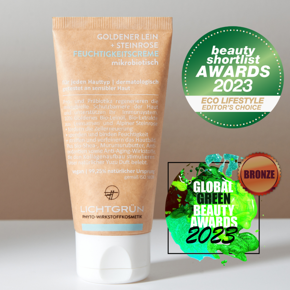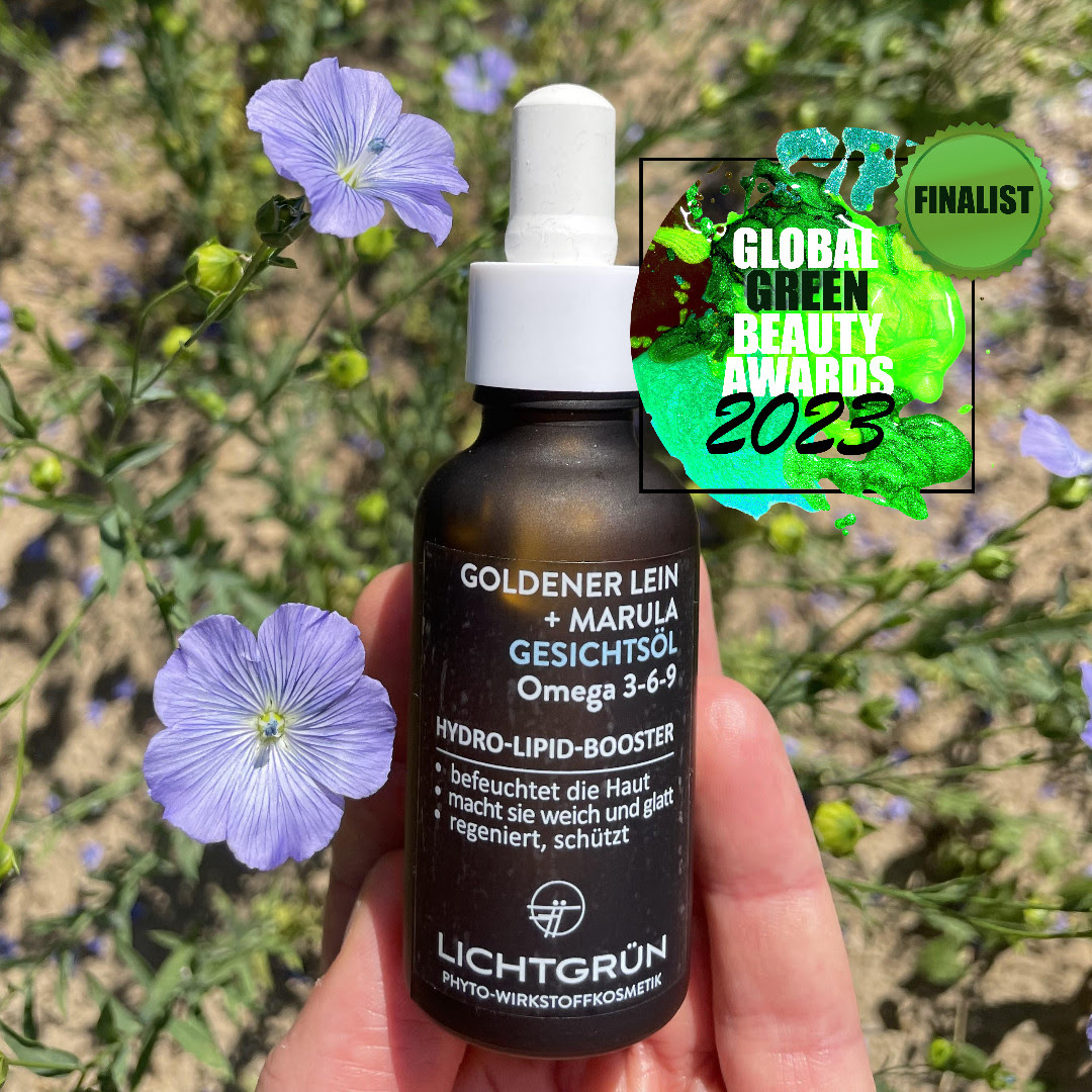 Was mich besonders freut, ist, dass das unglaublich gesunde Leinöl aus europäischem Anbau stammt. Lein und damit auch Leinöl ist eine unserer ältesten Kulturpflanzen, ein fast vergessenes Superfood, das wir nicht nur löffelweise zu uns nehmen, sondern auch unserer Haut gönnen sollten. Kein Wunder, dass einige der Lichtgrün-Produkte bereits prämiert sind!