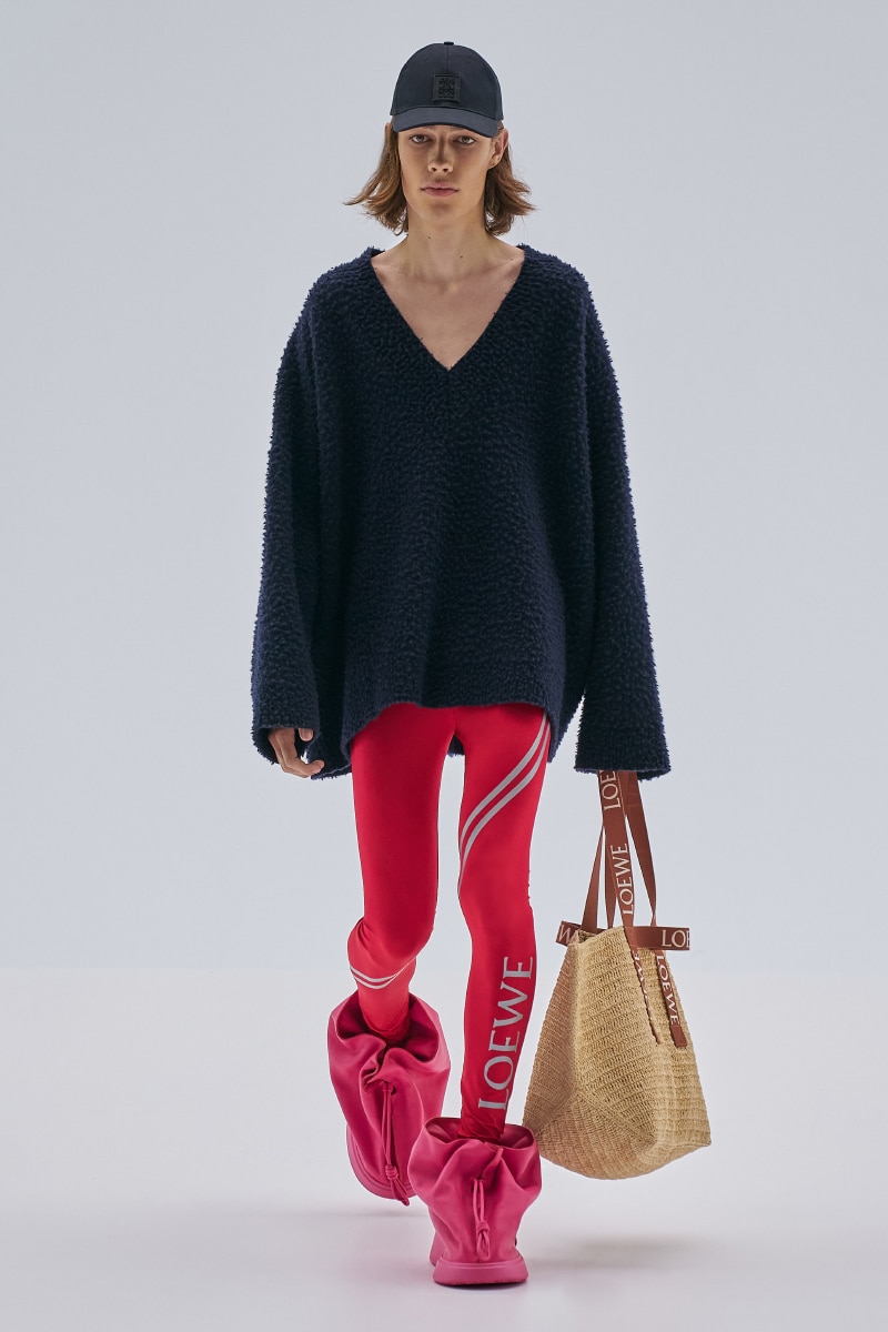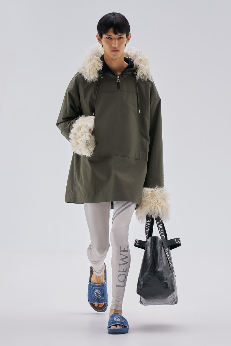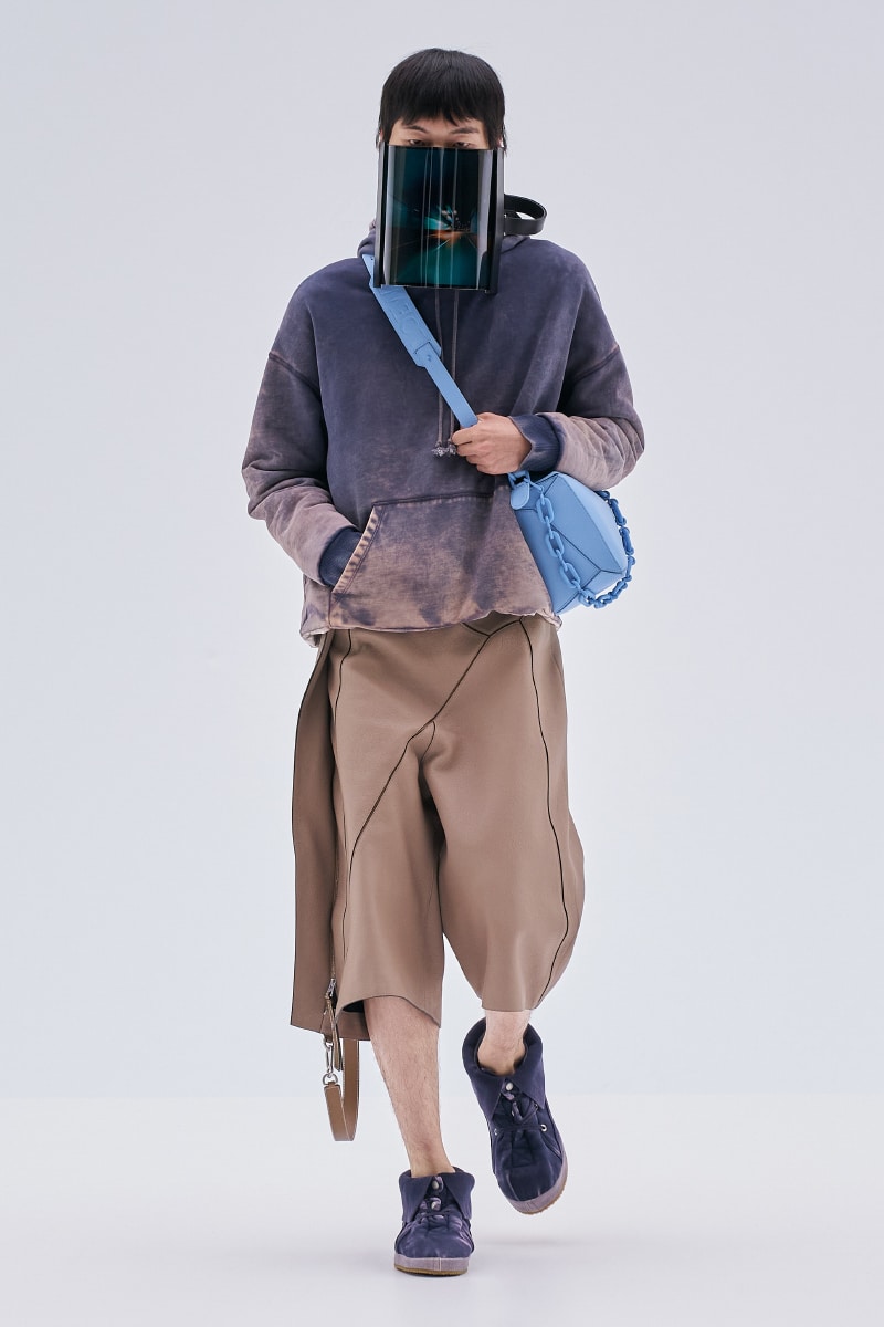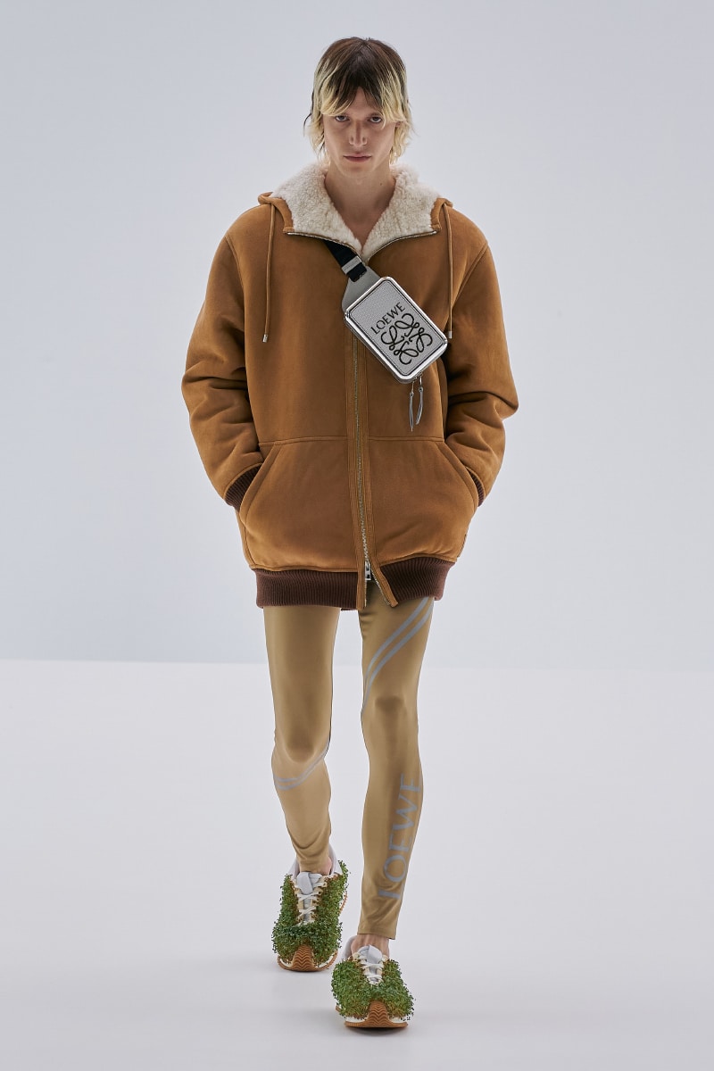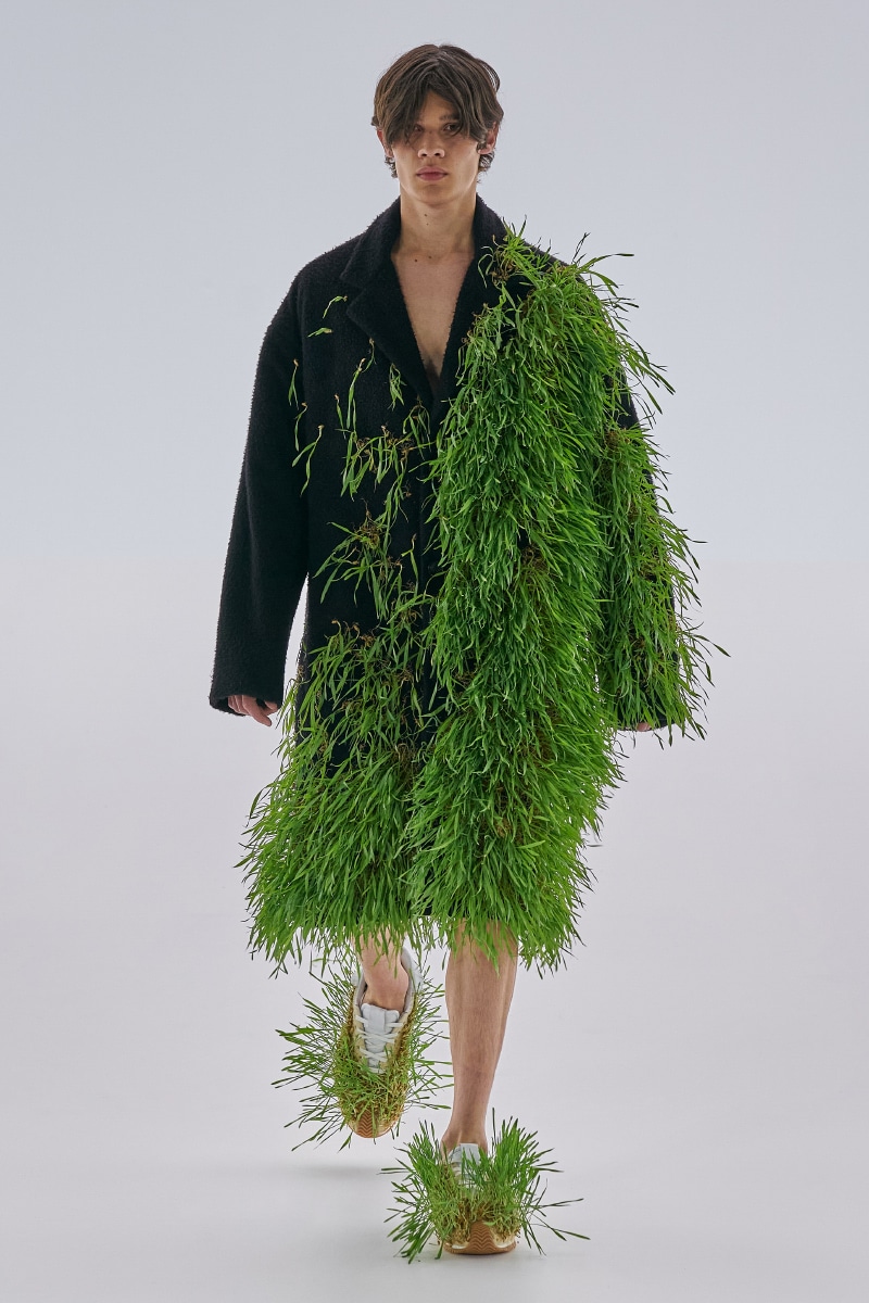 While conversations are being had around nature and technology, LOEWE Spring/Summer 2023 explores the real and the digitally produced. Grass growing on the fabric. Birds flying, fish swimming, water dripping, screens convert coats and tops in projection devices saw humans kiss.