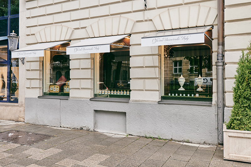 Verknüft zwischen französischer und deutscher Kultur, präsentiert die neue Boutique all die universellen Schönheits-Geheimnisse der Officine mit ihren einzigartigen Düften, ganz ohne Alkohol, natürlicher Kosmetik und Pflege – wie zum Beispiel die verschiedenen Puder aus Ton oder auch pflanzliche Öle, die sorgfältig auf die menschliche Haut abgestimmt sind. Ein einzigartiger Gravur-Service für Kämme oder Lippenpflege wie auch die kalligrafische persönliche Beschriftung eines jeden einzelnen Buly-Produkts bereichern das exklusive Ambiente und machen jeden Besuch in der Officine Universelle Buly zu einem Erlebnis.