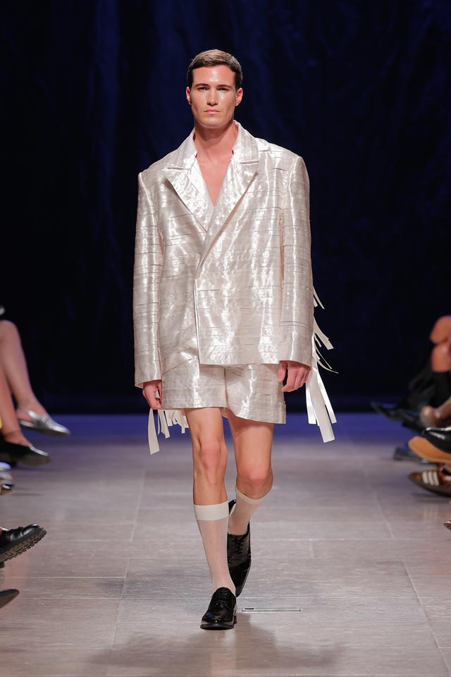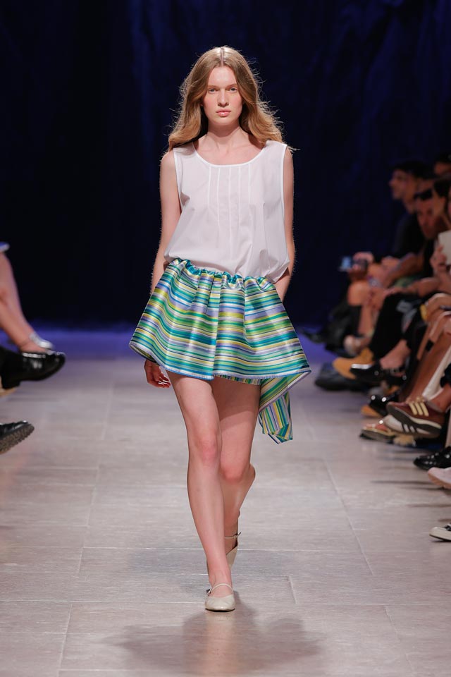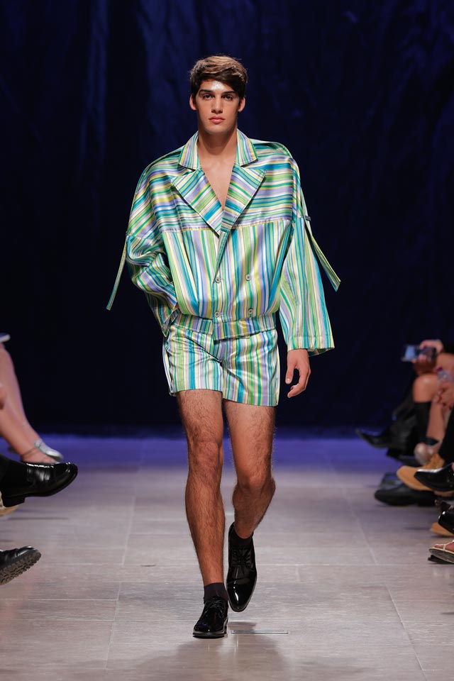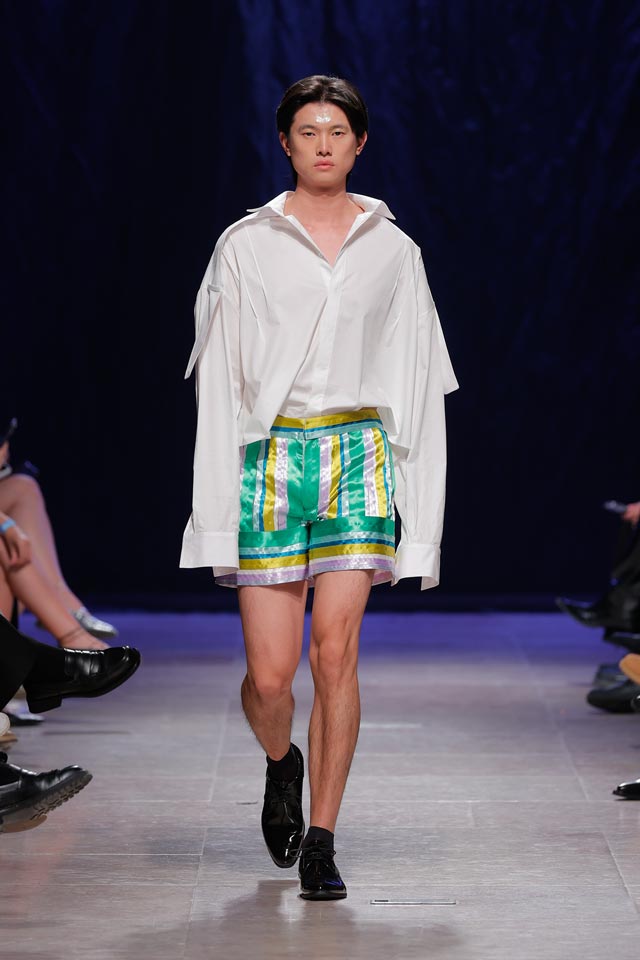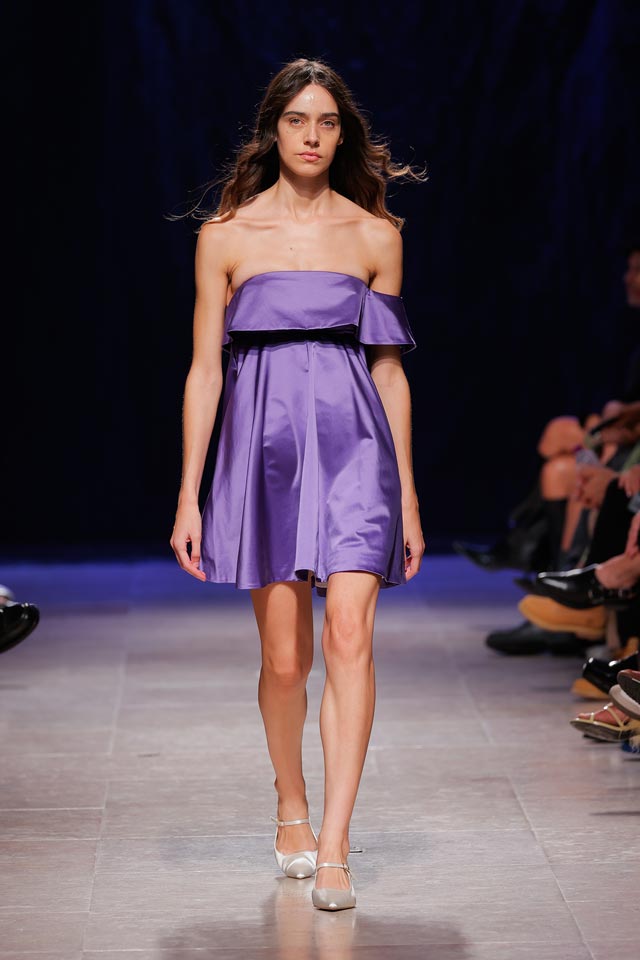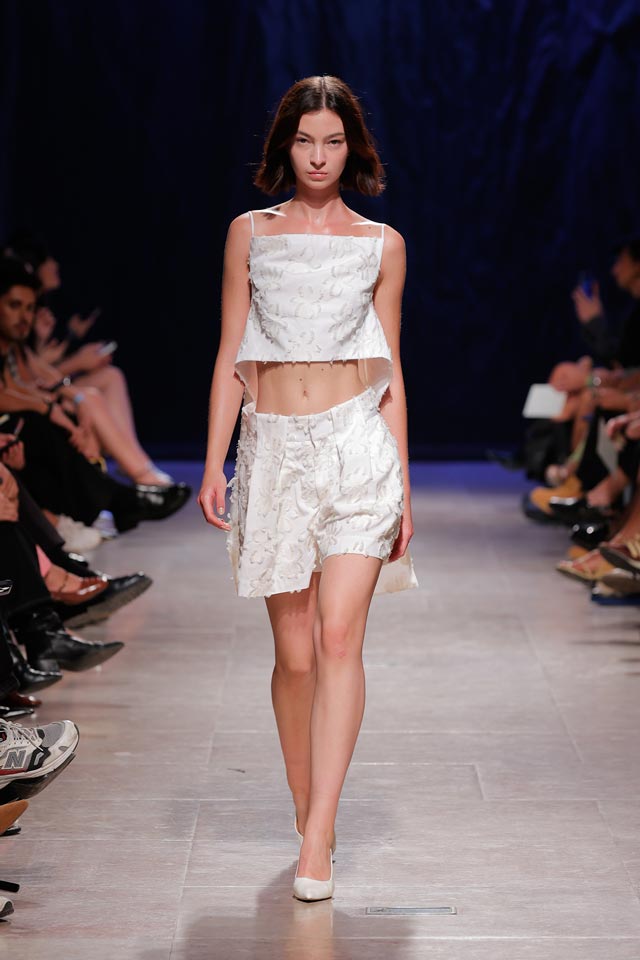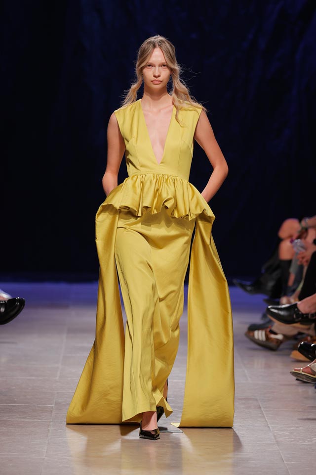 Maintaining our commitment to sustainability, more than 80% of the materials used come from deadstocks or recycled fibers. This is not just an environmental choice, but a design principle, allowing the stories of the materials to inform the collection’s narrative. Textural contrasts, between matte and glossy, stand out in structured cotton twills, luminous satins, and jacquards.