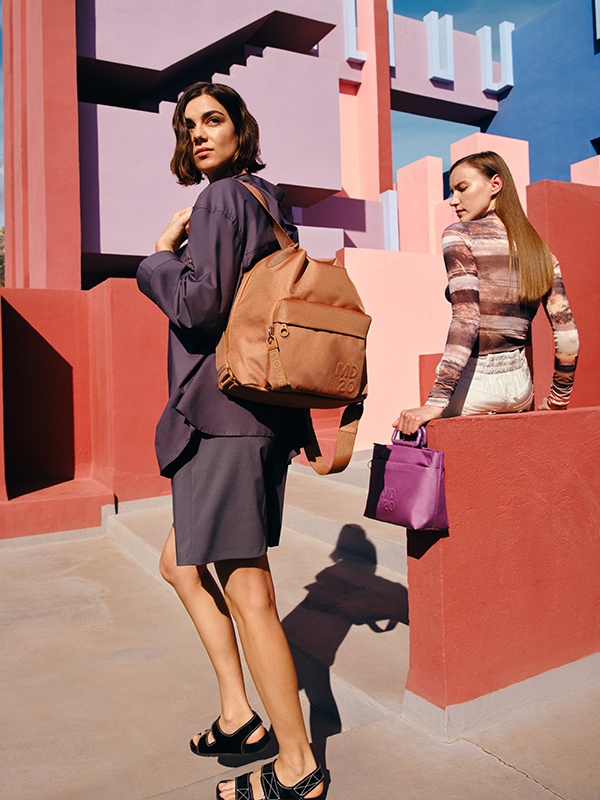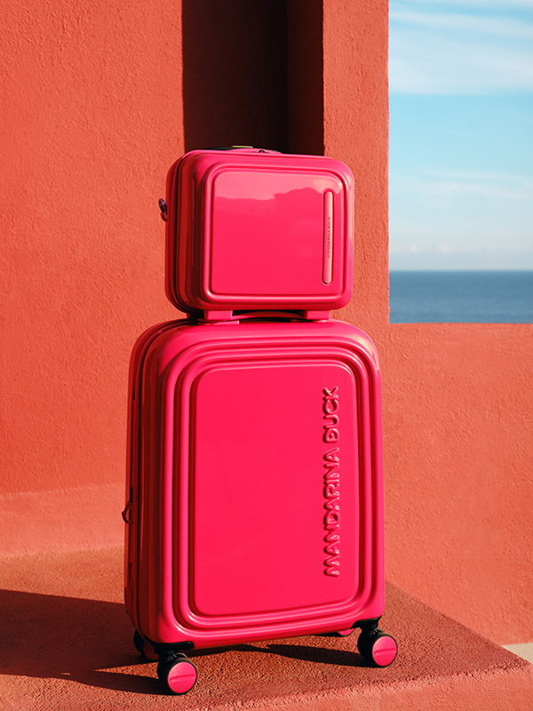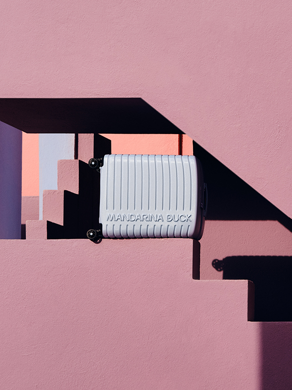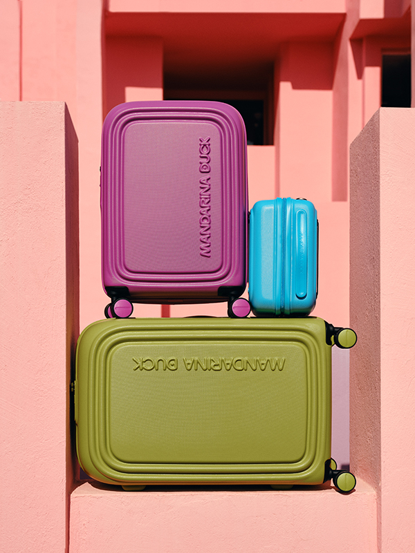 Mandarina Duck has staged its new SS25 collection in one of the world’s most iconic architectures: La Muralla Roja on Spain’s Mediterranean coast. With this setting, the brand pays tribute to the visionary architect Ricardo Bofill, whose brightly colored architecture provides the perfect backdrop for the colorful bags and suitcases in the collection.