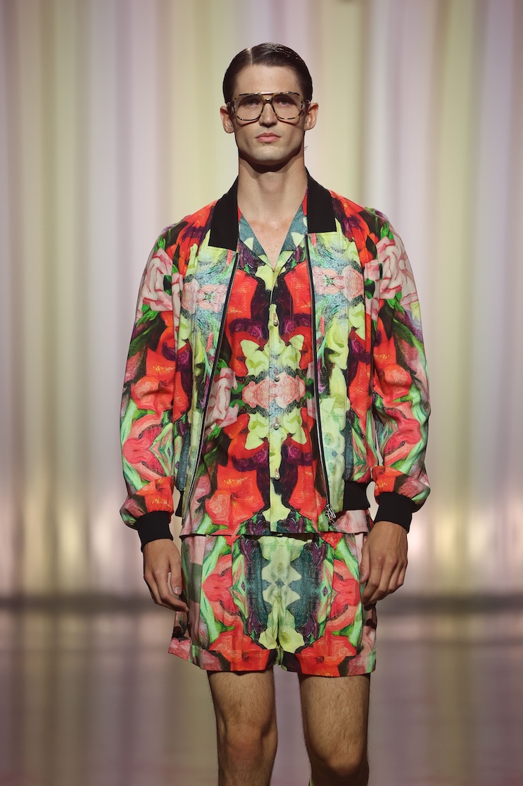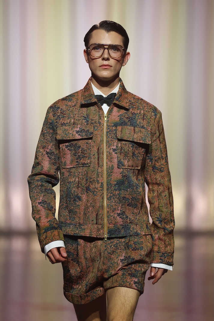Ornate flower motifs meet graphic shapes and black patent leather. Swinging dresses with corsage details, opulent flower prints and delicate lace are presented next to edgy oversized blazers made of woven brocade. Patterns from tiles, flowers and paisley create new pictures. 70 ́s suits with baroque prints, waving silk dresses with frills – every piece tells its own story.