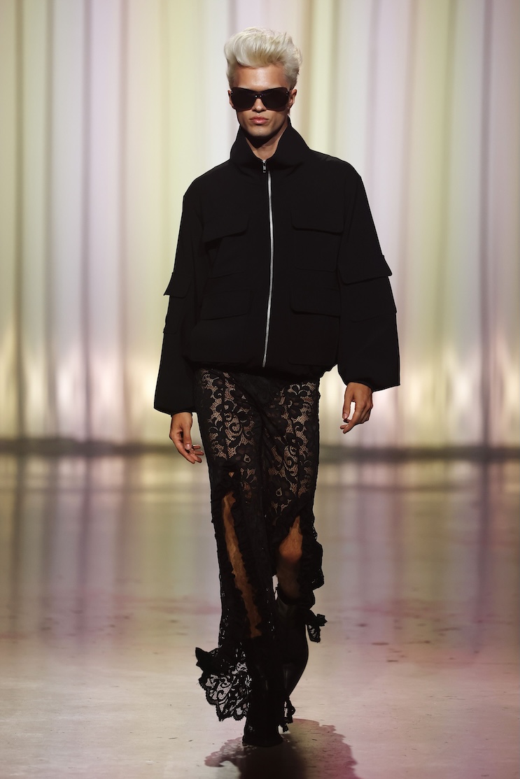 BERLIN, GERMANY – JULY 02: A model walks the runway at the COLLECTIVEFOUR Marcel Ostertag fashion show during Berlin Fashion Week SS26 at Uber Arena on July 02, 2025 in Berlin, Germany. (Photo by Matt Jelonek/Getty Images for Marcel Ostertag)