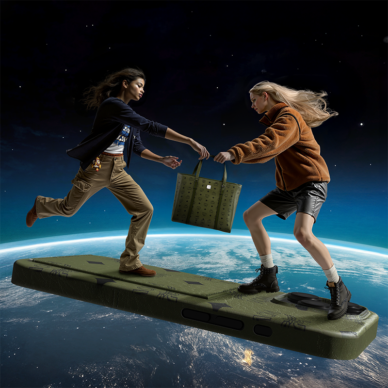 Just in time for the back-to-school season, MCM presents its latest campaign: a visually stunning series that reinterprets everyday life through a unique blend of hyperreal 3D elements and AI-generated collages. The campaign showcases MCM’s latest collection of bags, watches, and accessories in bold, oversized compositions staged against surreal lunar and cosmic landscapes. This concept transforms everyday items into extraordinary elements of a science fiction narrative.