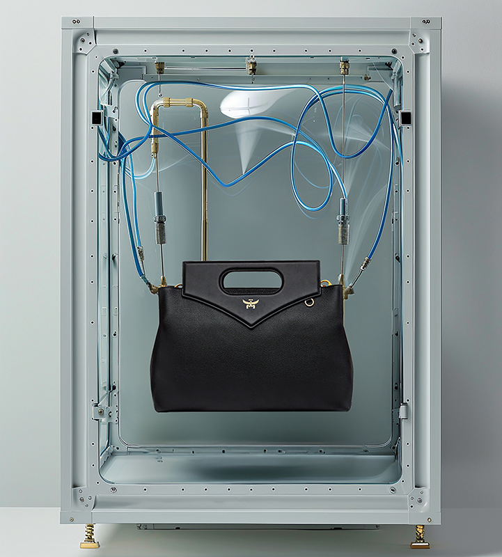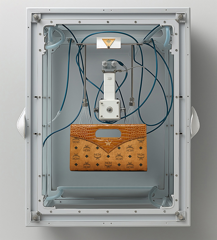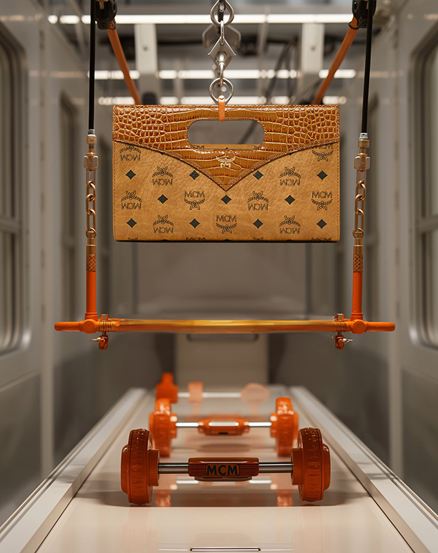 At the heart of this interstellar adventure is the new Diamant 3D bag, a masterpiece crafted by MCM’s creative team under the visionary direction of Global Creative Director Katie Chung. The Diamant 3D reimagines the classic Diamant clutch with a bold, three-dimensional silhouette that balances style and functionality. Featuring a substantial zipper, this bag is the ultimate accessory to conquer our digital nomad customer. It is available in a luxurious mix of materials, including cow suede and Uine Italian calf leather, a striking silver metallic calf leather, or MCM’s classic cognac Visetos, making it a prime contender for the season’s must-have bag.