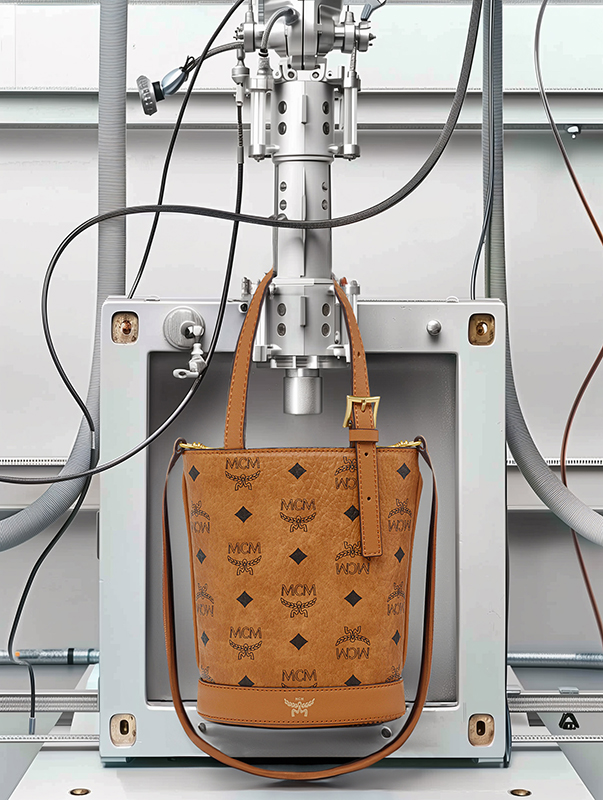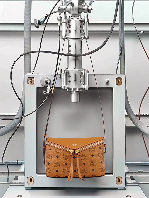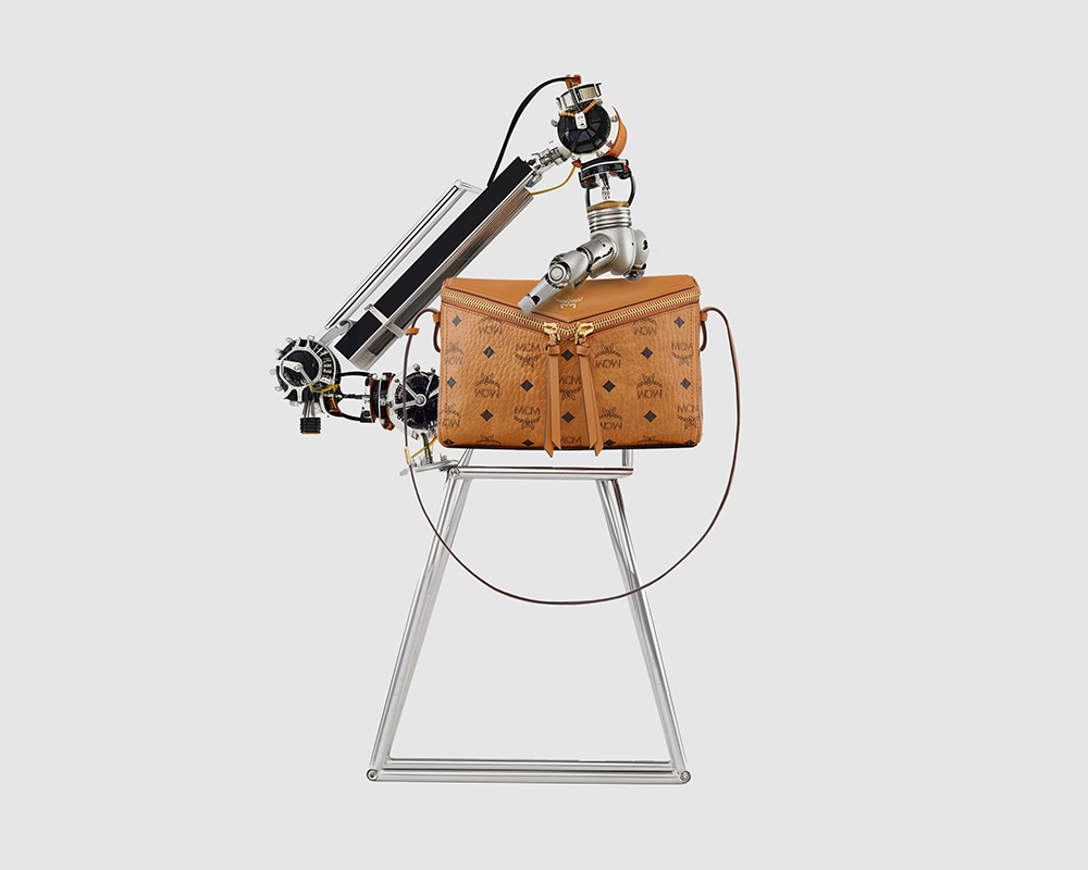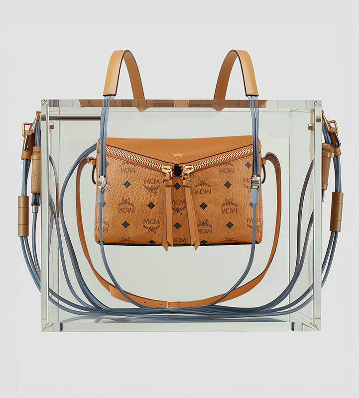 Themission“FromMünchenToMars”epitomizesMCM’sspiritofinnovation.Alongsidethe Diamant 3D bag, other stellar pieces in the collection—the stark backpack in Cognac Visetos, visionary eyewear, and key ready-to-wear items in futuristic metallic silver and iconic Cognac Visetos—are designed to equip you for an otherworldly mission.